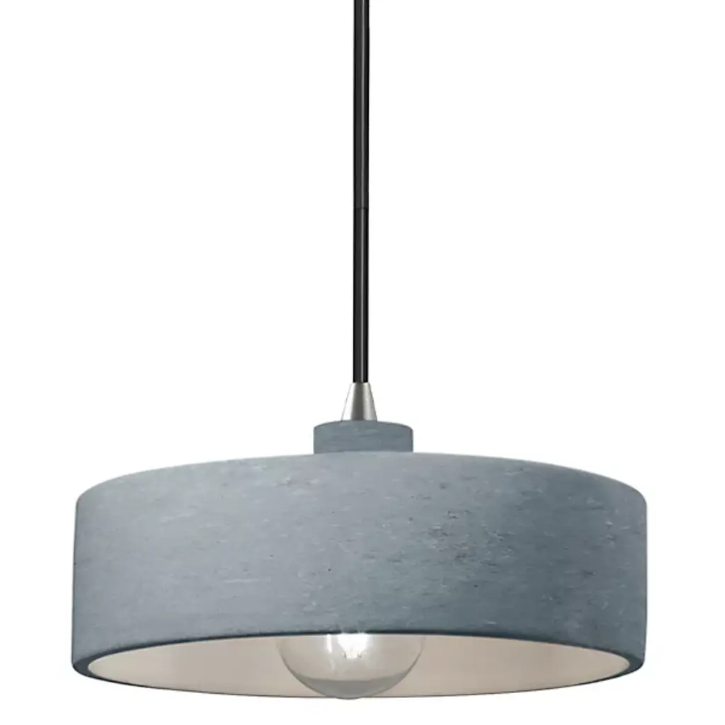 A sleek lighting look, artfully made. The shade of the Radiance Dish Ceramic Drum Pendant by Justice Design Group is a smooth, shallow drum that’s hand-crafted of ceramic, with a stepped holder that’s joined to the suspension cord by a conical metal connector. The geometric shape and smoothly applied color of the pendant add an artistic feel to any contemporary kitchen or dining area. Plus, the ceramic material makes it especially durable and hard-wearing for commercial or home applications alike.