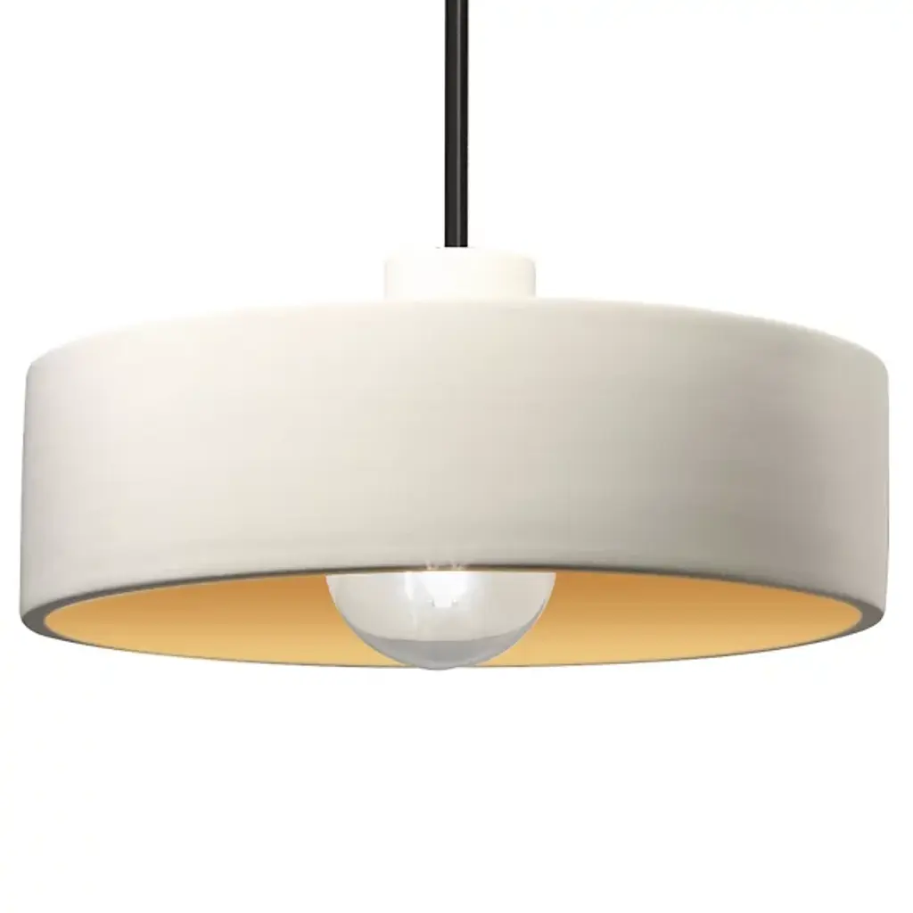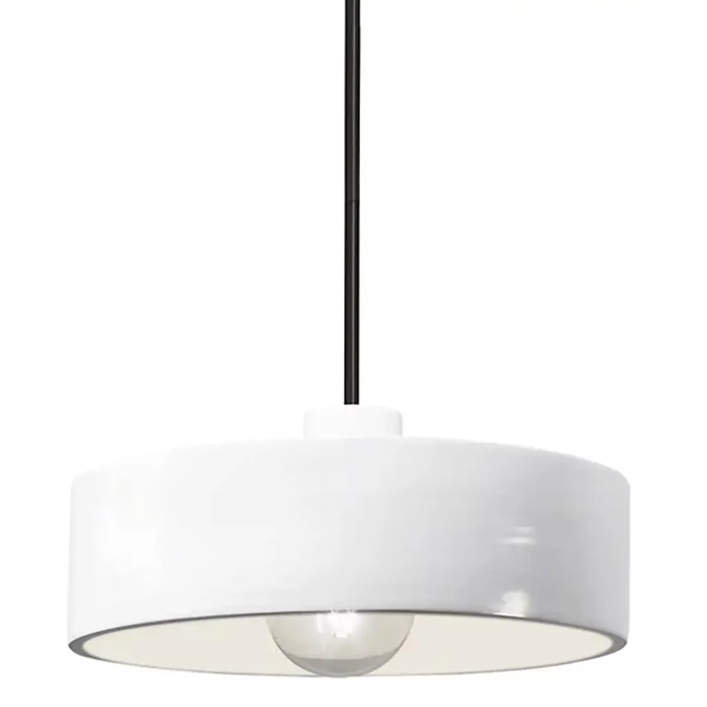 Serve up a great sense of style with the Radiance Dish Drum Pendant by Justice Design Group. Made entirely of ceramic, the shade has a smooth, shallow drum shape that allows for an unimpeded wash of direct downlight over a kitchen island or dining table. To ensure a sleek final look and easy installation, even from a sloped ceiling, this pendant light includes multiple rigid metal stems and a 360-degree hang-straight swivel canopy.