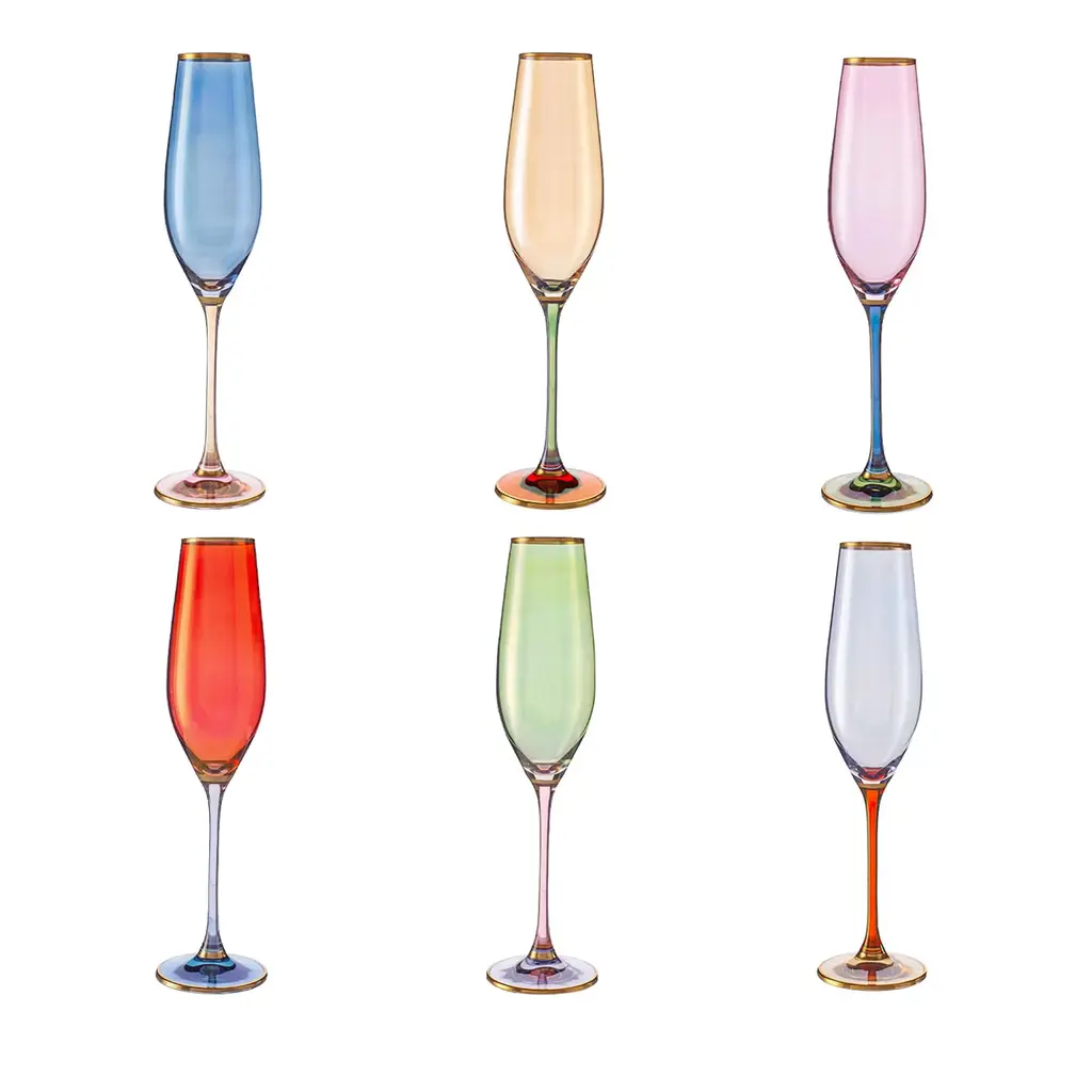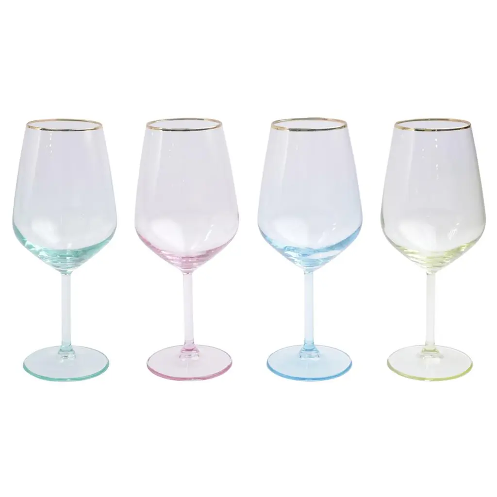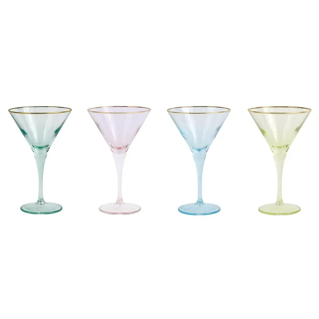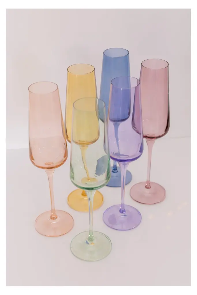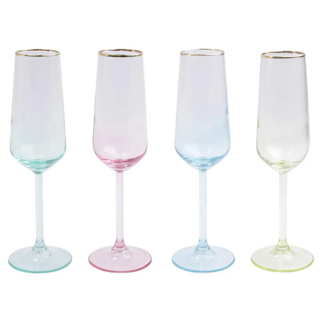 Add sparkle to any setting with a gilded gold rim and varied colored glass that refracts light on the Rainbow Assorted Champagne Flutes. Since 1983, Vietri has specialized exclusively in Italian handcrafted ceramics, stainless and pewter flatware, mouth blown glassware, lamps, urns and planters. Families of artisans with 3 or 4 generations of history create these special pieces using centuries-old techniques. The subtle color from a paintbrush and the curving stroke of the artist's hand are never repeated in quite the same way, making each piece truly unique.