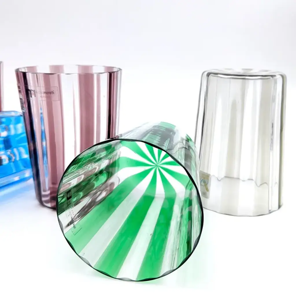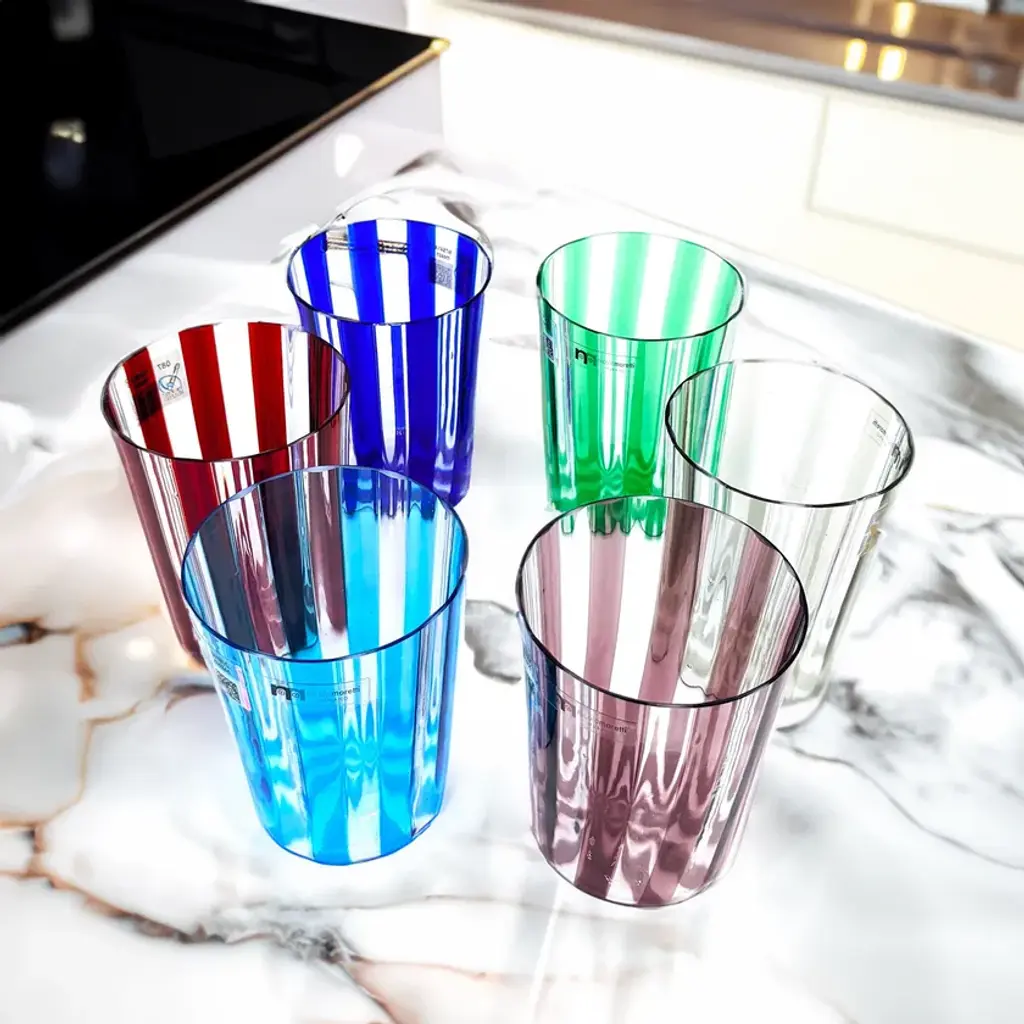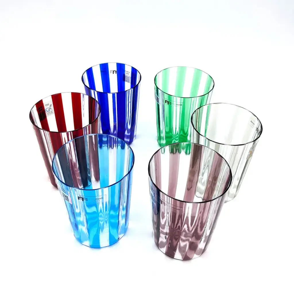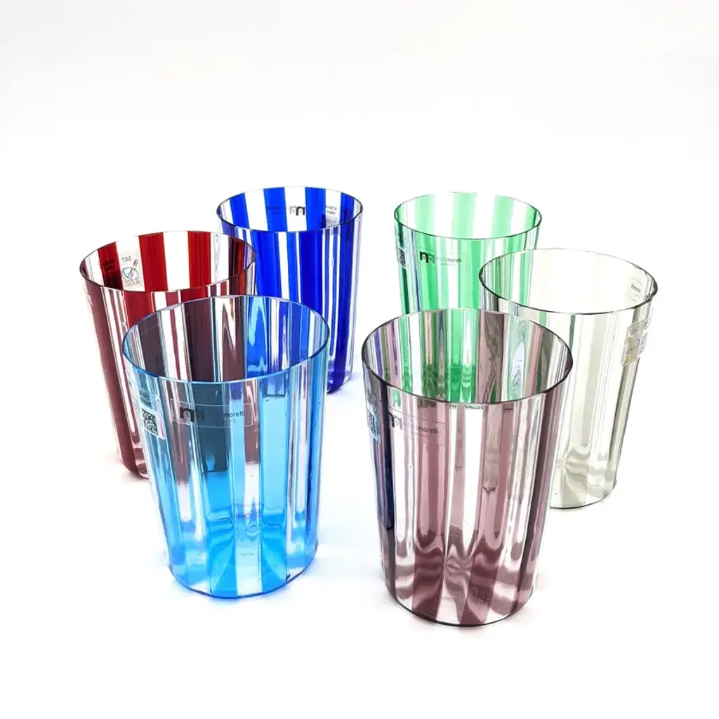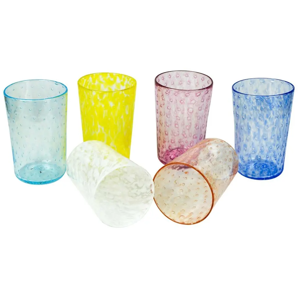 Elevate your special occasions with the RAINBOW set of Murano glass crystal glasses, featuring elegant vertical colored stripes. Make every occasion special with this exceptional set of six Murano glass crystal glasses. Each glass features elegant vertical-colored stripes, creating a captivating and refined effect. The set includes a glass with green stripes, one with red stripes, one with blue stripes, one with purple stripes, one with gray stripes, and one with azure stripes. Each glass has been meticulously handcrafted by Murano glass artisans, ensuring the highest quality and attention to detail.Whether you have a classic home décor or a more modern one, whether you need colorful glasses to give a creative twist to your dining room or you are looking for a more sophisticated option to add an elegant touch to your dining table, you will certainly love our Murano glass tumblers, also known as “goti”. These precious Murano glasses are carefully handmade by expert glassmakers in the heart of the Venetian lagoon, they are unique collectible items to impress all your guests! All products are handcrafted and prime production quality. Insubstantial variations in shape, size, colour, small imperfections in the glass are not considered defects; they are inevitable and are typical of manual production of the glass and characterize handcrafted production.