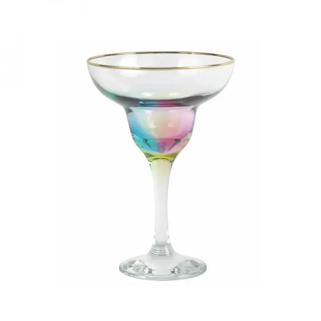 Add sparkle to any setting with a gilded gold rim and varied colored glass that refracts light on the Rainbow Martini Glass. Since 1983, Vietri has specialized exclusively in Italian handcrafted ceramics, stainless and pewter flatware, mouth blown glassware, lamps, urns and planters. Families of artisans with 3 or 4 generations of history create these special pieces using centuries-old techniques. The subtle color from a paintbrush and the curving stroke of the artist's hand are never repeated in quite the same way, making each piece truly unique.
