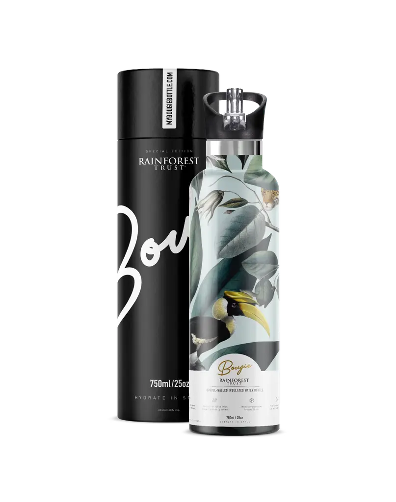 A bottle with extra benefits! But how?!?Aside from having a beautiful reusable bottle to quench your thirst and reduce your carbon footprint, you can make a greater impact. With your purchase of our Rainforest Trust water bottle, 5% of the proceeds will help support our partner, Rainforest Trust protect endangered wildlife and preserve our planet. Stay hydrated, feel cool, and know you’re sustainably bougie!