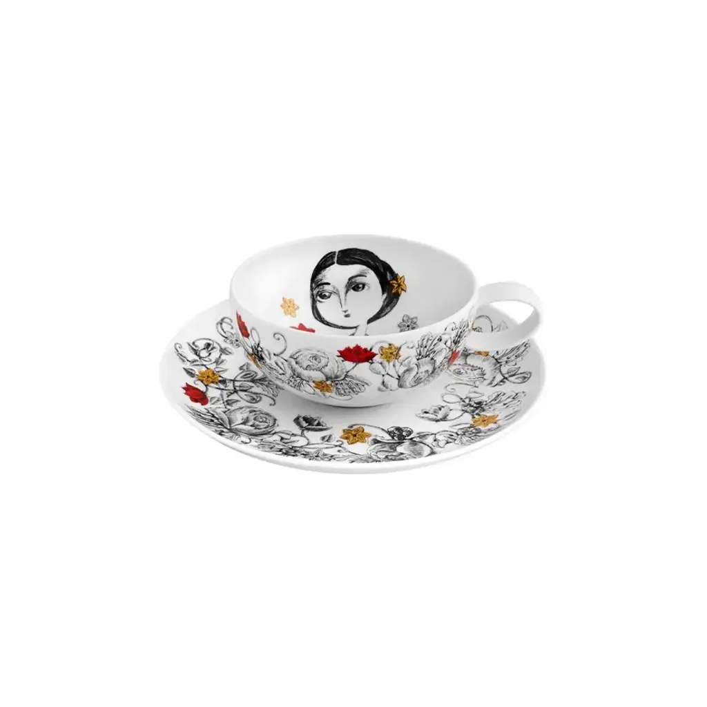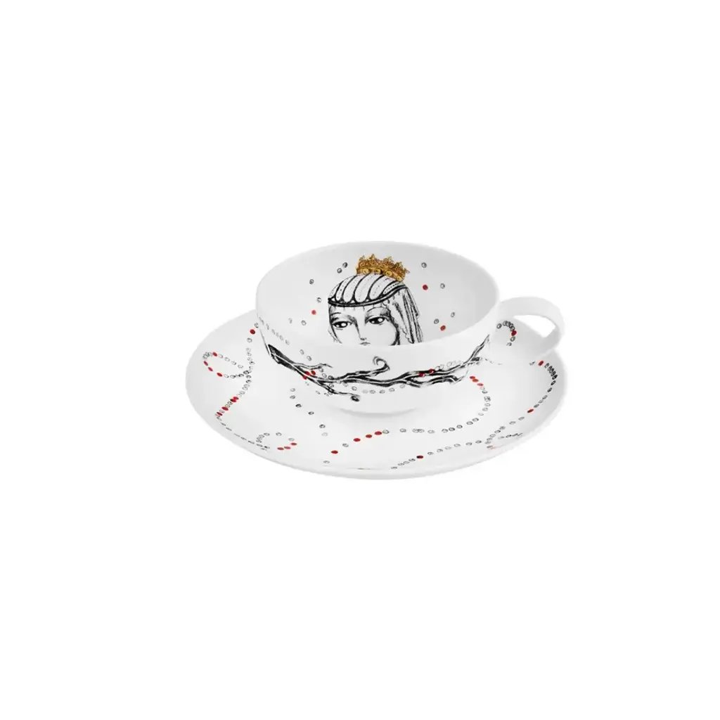 Set 6 Tea Cups with Saucers Rainhas de Portugal. The Rainhas de Portugal [Queen of Portugal] pay homage to enchanting queens from Portugal's history (one of them posthumously): Inês de Castro, Rainha Santa Isabel, D. Vista Alegre is a world-renowned tabletop company and manufacturer of the largest collection of fine tableware, home decor, giftware, and hotelware in porcelain, crystal and glass in Europe. Known for its strong connection to design and culture and its tradition of working with world-renowned artists such as Christian Lacroix, Oscar de la Renta, and Karim Rashid, Vista Alegre offers a quality of excellence that appeals to a broad range of consumer tastes.
