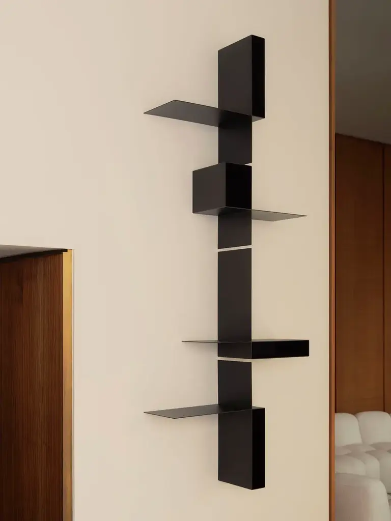 Randomissimo represents the extreme rationalization of the Random concept. It accompanies the ripe sign of the present collection towards its total subtraction, turning it into a simple graphic line, an apostrophe on the wall. A piece of furniture for personal items: featuring a reduced overall size, it is changeable, playful, complementary and modular.Randomissimo embodies so well MDF Italia’s identity principles: subtraction, formal and technical simplicity and strong emotional imprint.A product that immediately unveils, through its playful modularity and colours, the capability of developing small aggregations, as well as endless compositions with a surrealistic spirit.FrameworkShelf made of 2.5 mm thick steel sheet, powder coated in matt white and graphite grey. There are two formal types (module A and module B) that, either by combination or specific project, can develop large-sized and high impact lay-outs.Wall fixing through built-in brackets with multiple drilling.The shelf is complete with backrests coated with artificial fibre canvas, complete with magnetic coupling. Colours available are: white, black, grey, dove grey, red, blue.