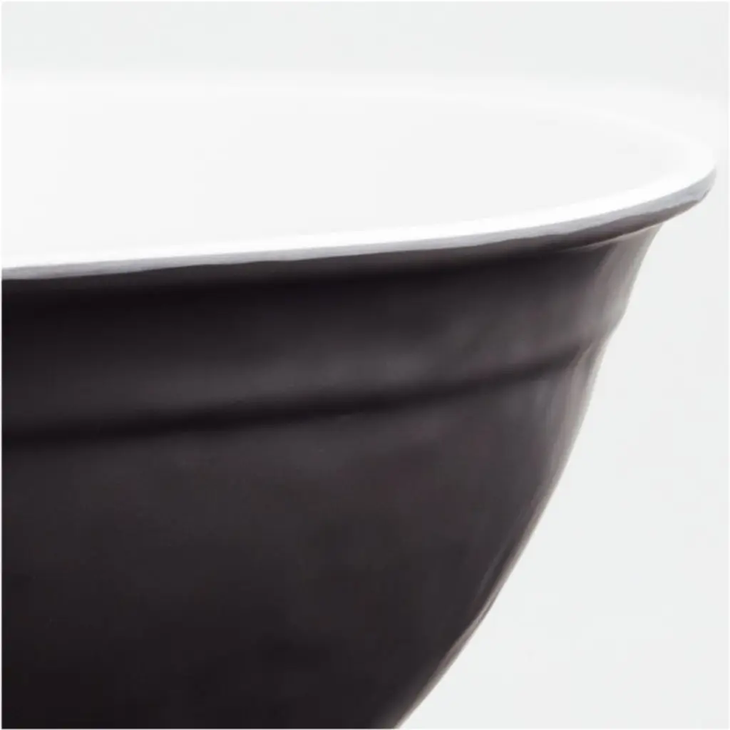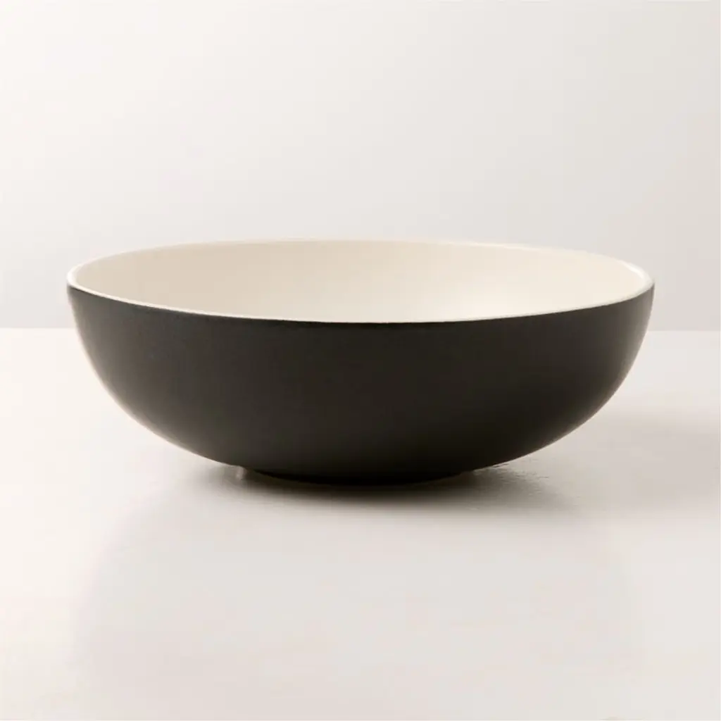 Leanne Ford's artisanal Range dinnerware, reimagined in durable melamine for worry-free entertaining and family-friendly dining. Contrasting with the bright white, perfectly smooth interior, the serving bowl's textured black exterior perfectly mimics the hand-thrown ceramic original for an organic look. Pair the melamine serving bowl with the other pieces in our exclusive Range dinnerware and serveware collection to set an elevated outdoor table.This piece is part of our exclusive collaboration with star designer Leanne Ford. Curated and crafted around the world, the collection brings Leanne's cool, effortless vibe home to you.