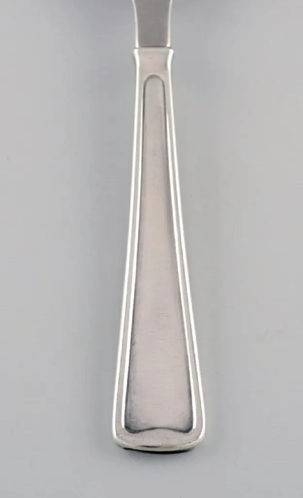 Rare Georg Jensen Koppel cutlery. Dessert spoon in sterling silver and stainless steel. Five spoons are available.Length: 16.5 cm.In excellent condition.Stamped.Designed by Henning Koppel in 1981.Our skilled Georg Jensen silversmith / goldsmith can polish all silver and gold so that it appears new. The price is very reasonable.