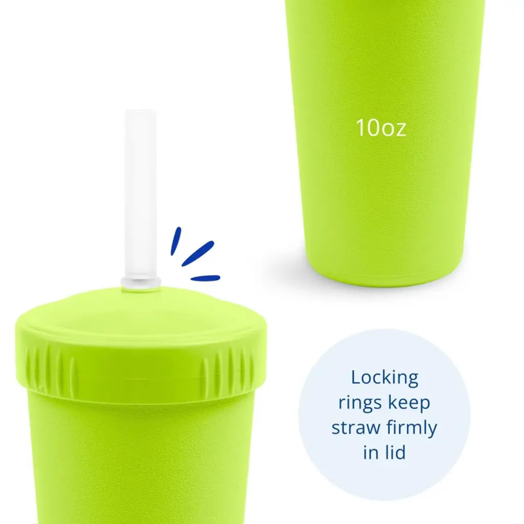 Sip, Stack, and Go!Re-Play’s Straw Cups are designed for active toddlers and young kids who need reliable hydration—whether they’re at home, on the road, or at the playground. Each 10.4 oz cup comes with a secure straw lid and a soft, reusable silicone straw that locks into place for spill-resistant sipping.Crafted from thick, recycled plastic, these cups are tough enough to handle everyday drops while remaining light and easy to grip for little hands. Their smart, stackable design keeps your cabinets clutter-free, and they’re dishwasher-safe for quick, hassle-free cleanup.Safe & Convenient:Microwave-safe for short 20-second warm-ups (not for cooking)Dishwasher-safe for quick and easy cleanupMade in the USA from recycled HDPE. BPA-, Phthalate-, PVC-, and Melamine-free.