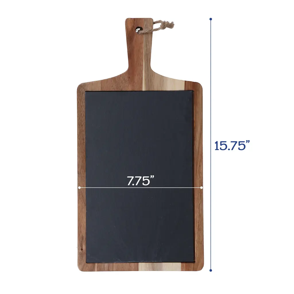 Ideal for serving a variety of treats, the BIA Cordon Bleu Acacia Wood 3-Piece Set of Rectangular Serving Boards With Slate offers a natural and stylish presentation option. This set includes 3 boards in assorted sizes: 10.5", 13.75", and 15.75". The natural slate surface is perfect for creating cheese plates or serving sushi, while the Acacia wood provides a grooved space for juicy steaks or other savory delights. These boards are not just practical but also add a touch of rustic sophistication to your dining experience. Hand wash only for maintenance. BIA Cordon Bleu: Designed With Modern Sensibility For Wherever You Live, However You Cook, And Whenever You Entertain.