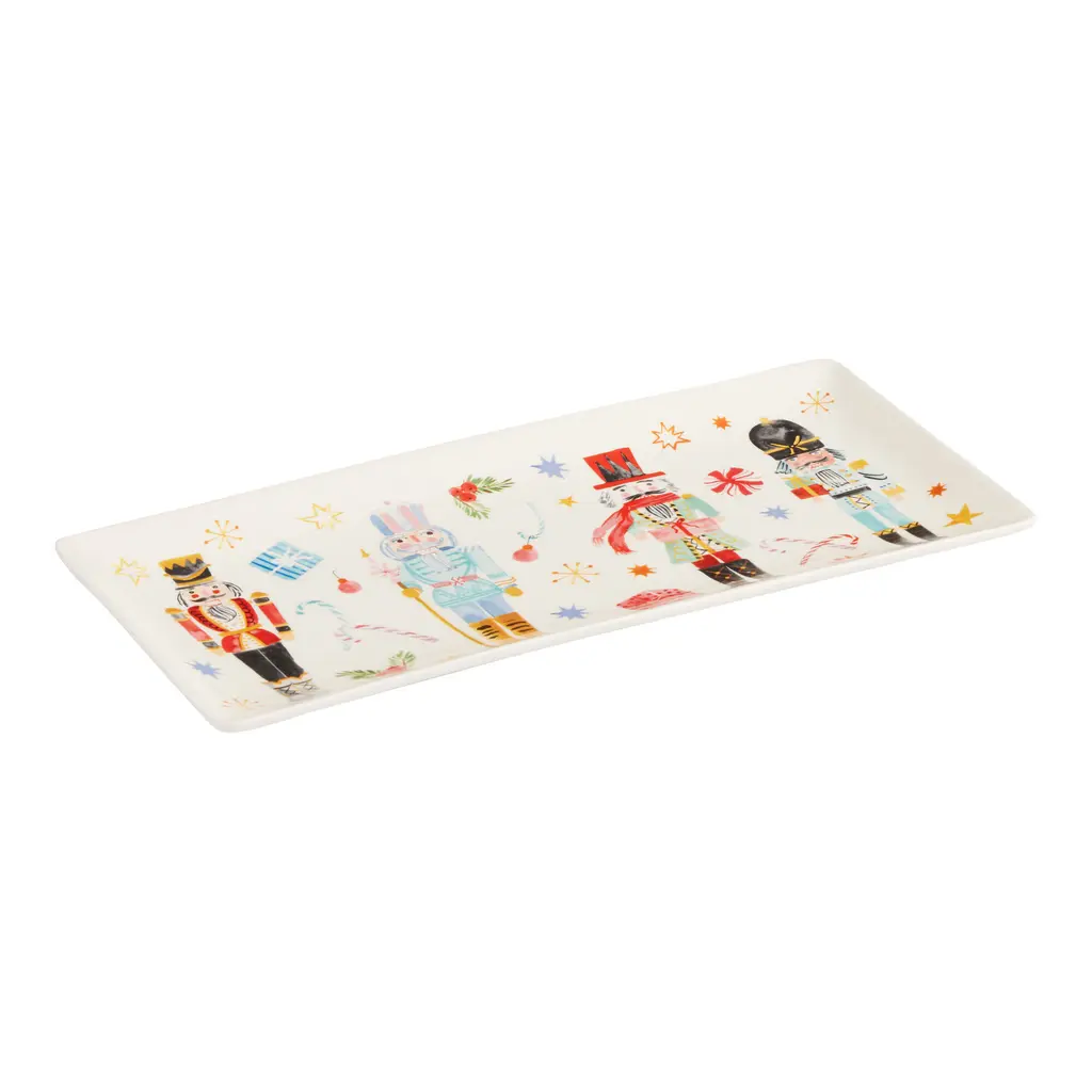 Rectangular Watercolor Holiday Nutcracker Serving Platter