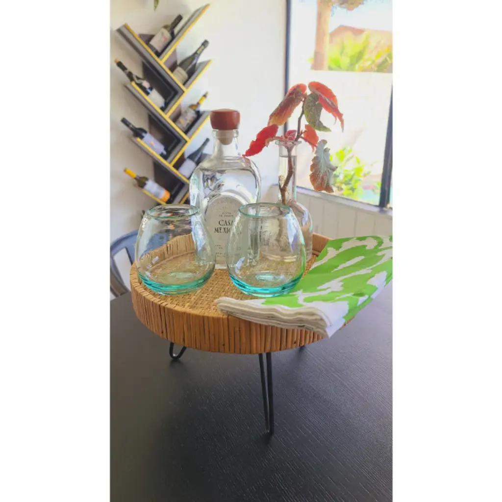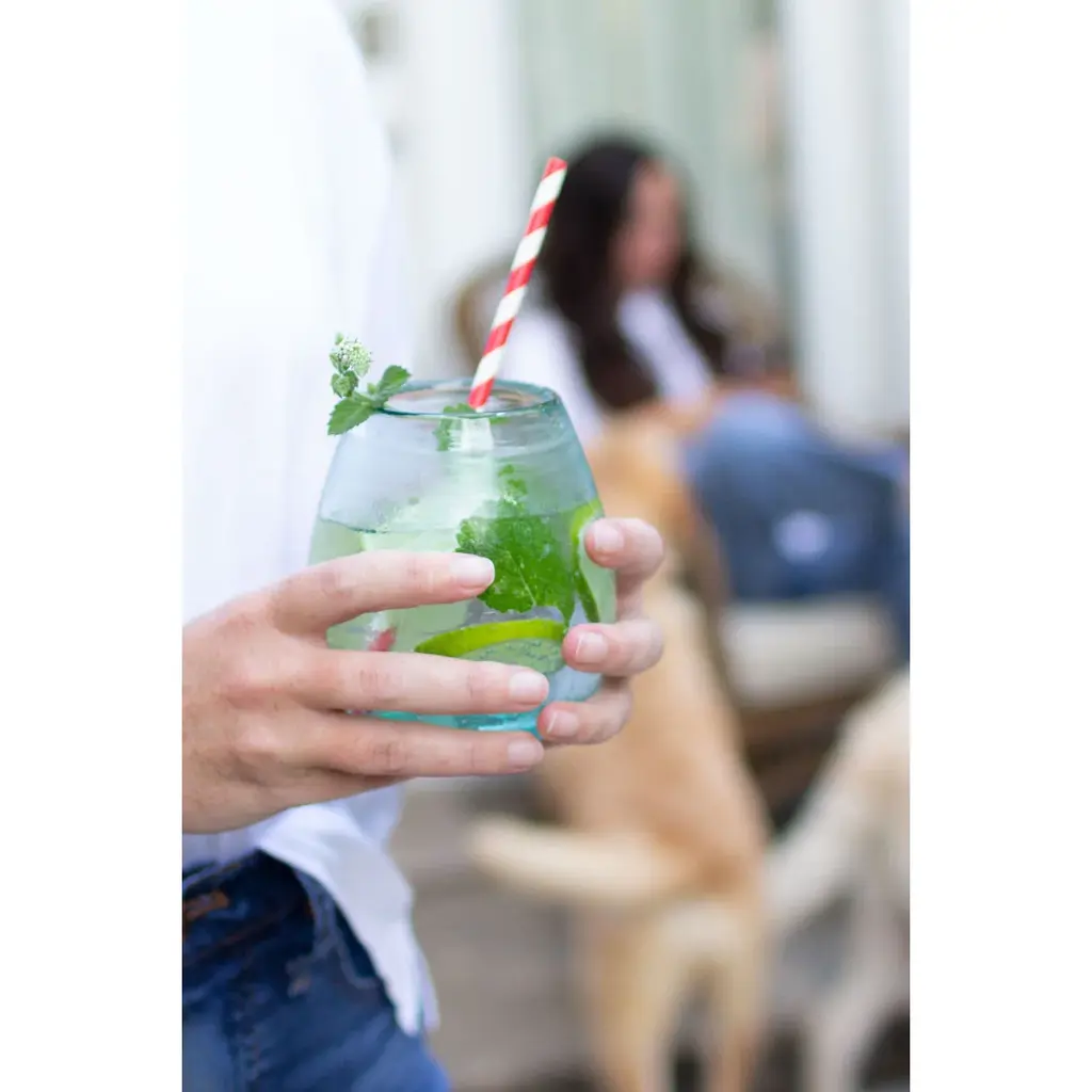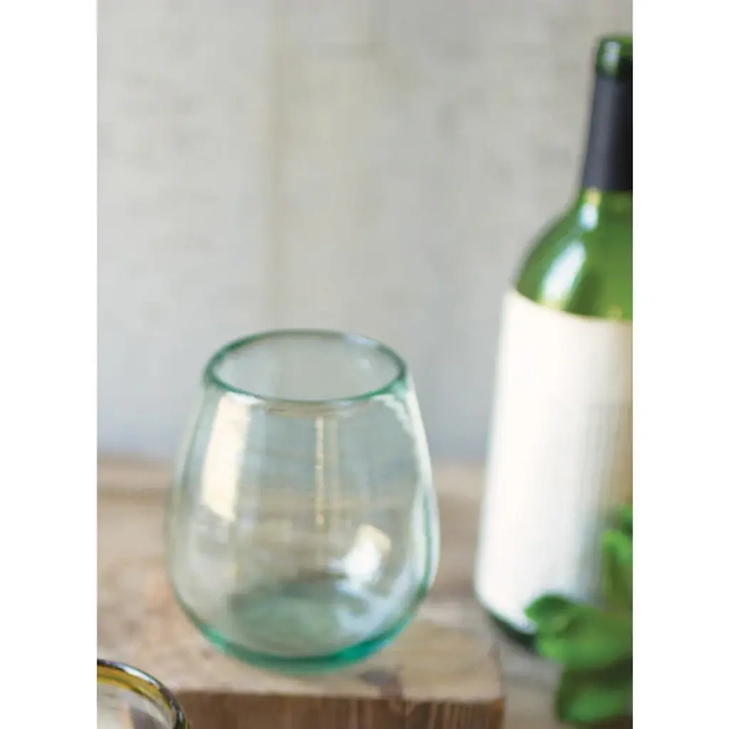 With a casual presence, that easily merges into a formal setting, these green recycled glass stemmed wine glasses add to the allure of a fine wine. Cheers!