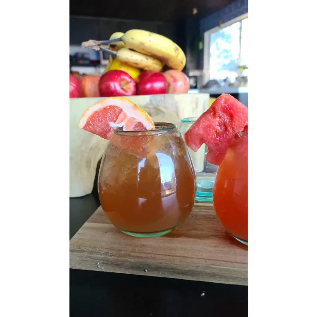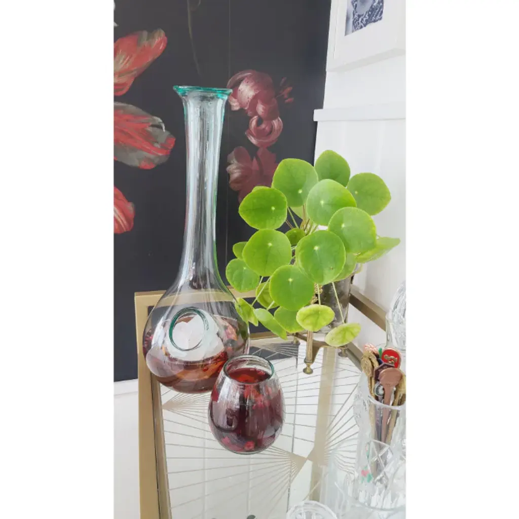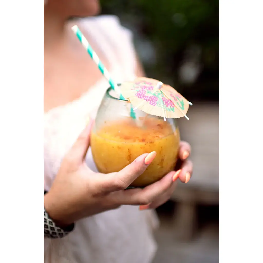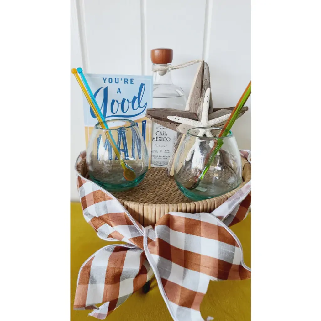 With a casual presence, that easily merges into a formal setting, these green recycled glass stemmed wine glasses add to the allure of a fine wine. Cheers!