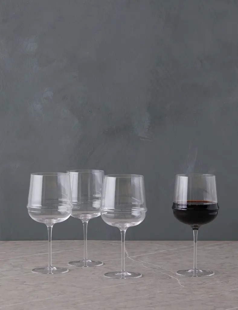 Red Hot Set Of 4 Pc Faceted Wine Glasses Glass