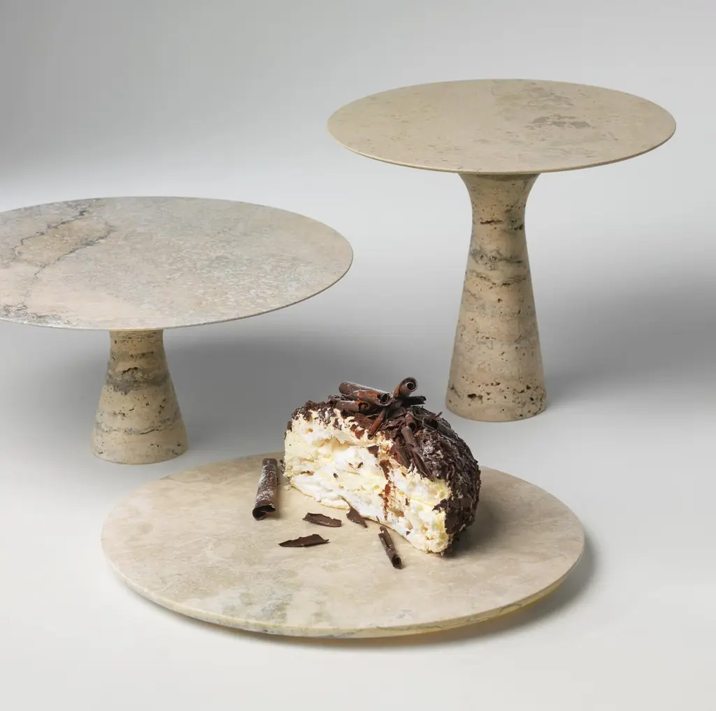 Refined Contemporary Marble 01 Travertino Silver Marble PlatterSigned by Leo Aerts.Dimensions: diameter 32 x height 2 cm Material: Travertino silver marble.Technique: Polished, Carved. Available in Marble: Kyknos, Bianco Statuarietto, Grey Saint Laurent, Picasso Green, Port Saint Laurent, Travertino Silver, Rosso Lepanto, or Travertino Rosso. Available in sizes Medium or Large. Also available in Sets. Angelo O is the brother and scale model of the natural stone table Angelo M. Angelo O can be ideally used as a cake dish or to serve other delicacies. The collection consists of three different models available in nine different marble types. Each object is completely hand-finished and is signed on the bottom. The slim base provides an elegant look and also promotes holding the object while serving.The objects have a honed, matte finish. Every Angelo O cake dish is packed in an original wooden gift box.A sculptural shape, robust material, elegant design, and a refined finish are the characteristics of Angelo O. The essence of each piece is defined by design, natural stone, and craftsmanship to meet the highest quality requirements. Angelo O2 is the little brother and scale model of the internationally award-winning Angelo M round table.Interior architect and designer Leo Aerts has run his own design agency Alinea for more than 30 years. The design has become part of his lifestyle. He swears by sober functional and timeless design that can be passed on from generation to generation. Neither Leo nor his designs can be categorized easily. The leitmotif? Durable materials are full of character. According to Leo, quality should always take precedence over quantity. His designs have repeatedly received national and international awards and accolades, including the coveted German Red Dot Award as well as the German Design Award, the Good Design Award in Chicago, and the AZ Award in Toronto.