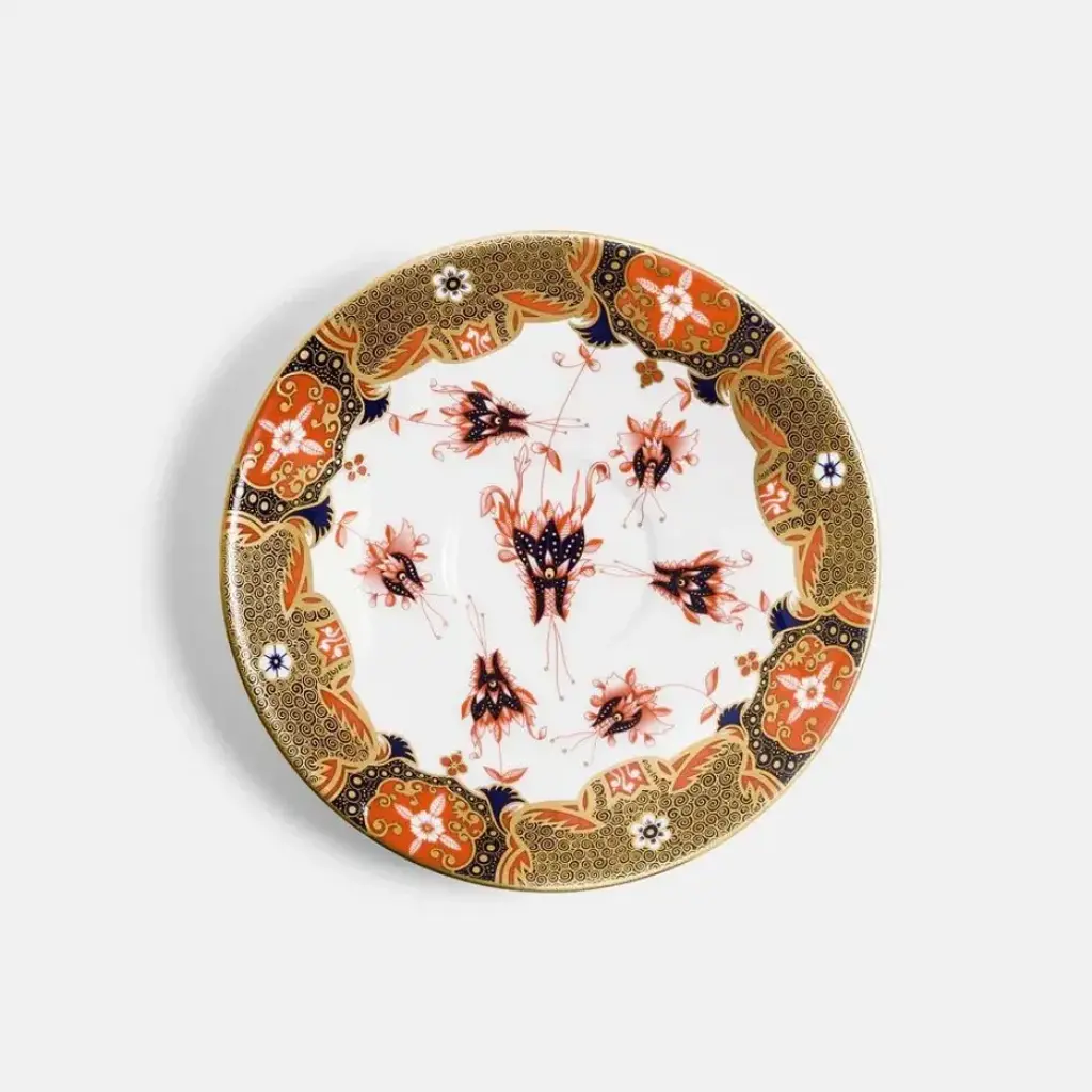 In the late 18th and early 19th century, porcelain manufacturers in Europe were inspired by what they referred to as “white gold”, or in other words, porcelain, which came to Europe from Japan and China. Two English manufacturers, Spode and Derby, were particularly intrigued by Japanese Imari porcelain, named after the port in Japan from which it set sail. Dragon Flower is our homage to the decorative floral designs of this era, however we’ve turned the flowers into dragons, adding a mythical eastern twist.