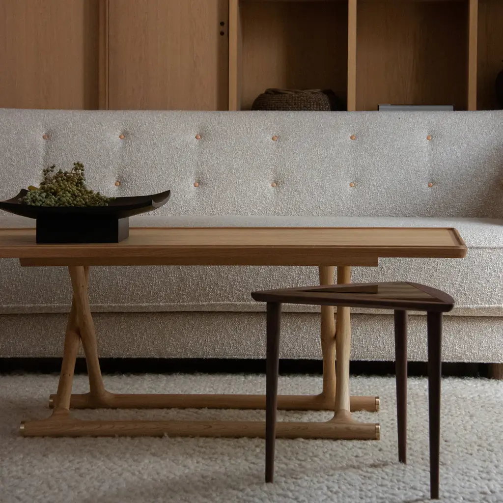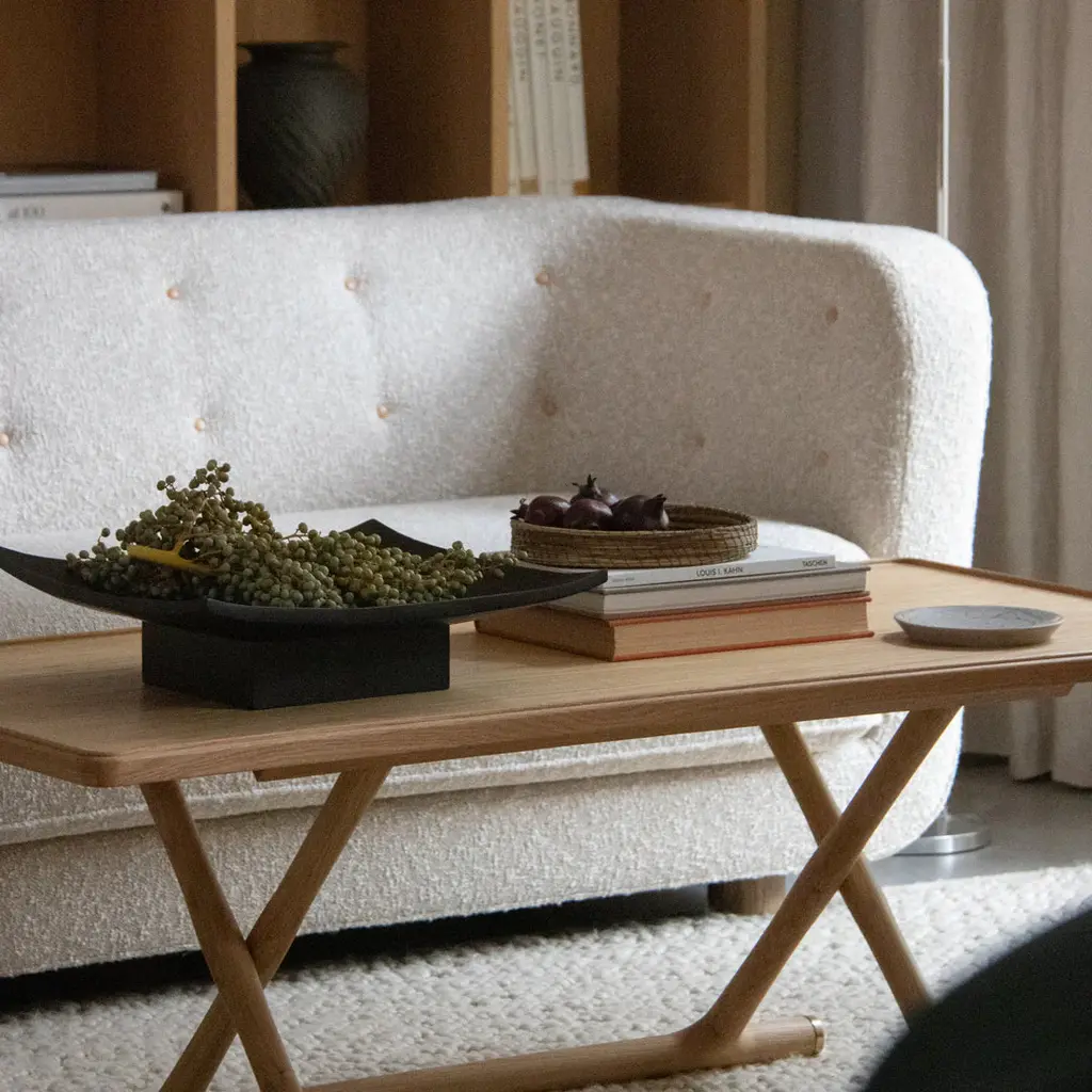 A simple platter that leaves a striking impression as a centerpiece on a dining or coffee table, the sculpted acacia wood design appears to float on air. Created for Audo by master stylist Colin King, its elevated base and upward curving edges cradle the contents within.
