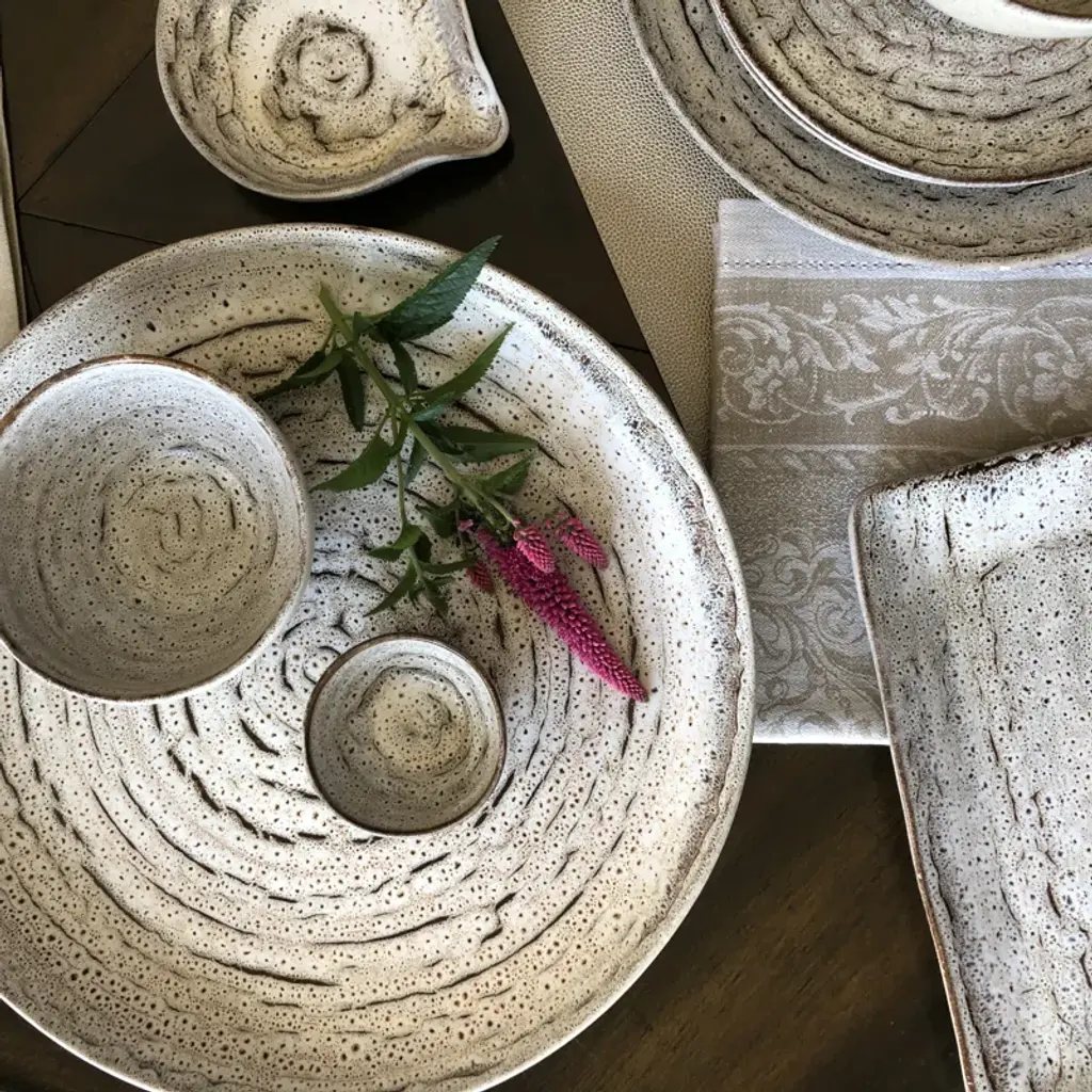 Add a versatile storage solution to your kitchen or entryway with this classic decorative platter. Crafted from chip-resistant stoneware, it showcases a brown and cream glaze with an abstract pattern to complement a variety of decor styles. Its circular shape that measures 14'' wide makes it just right for serving food or creating a base for decorative accents. We love that this tray is microwave and oven-safe, making it a versatile choice for both cooking and serving. Plus, it's dishwasher safe for easy clean-up.