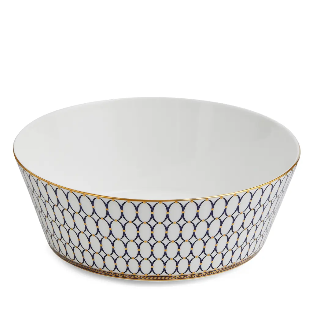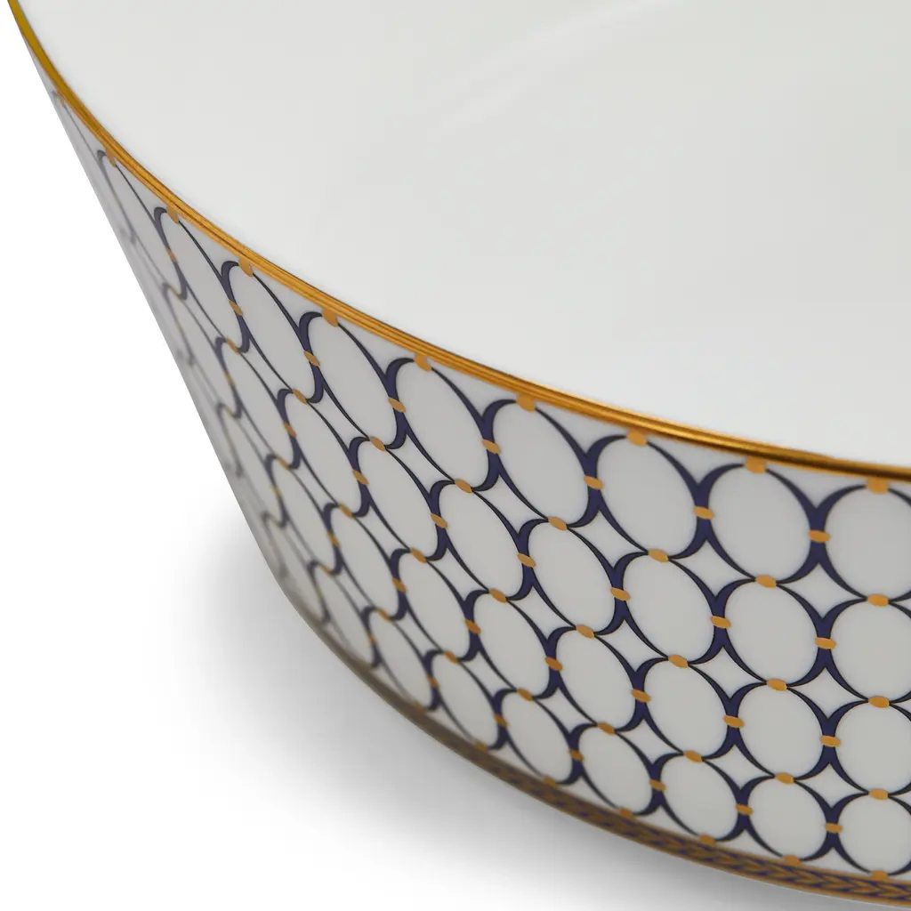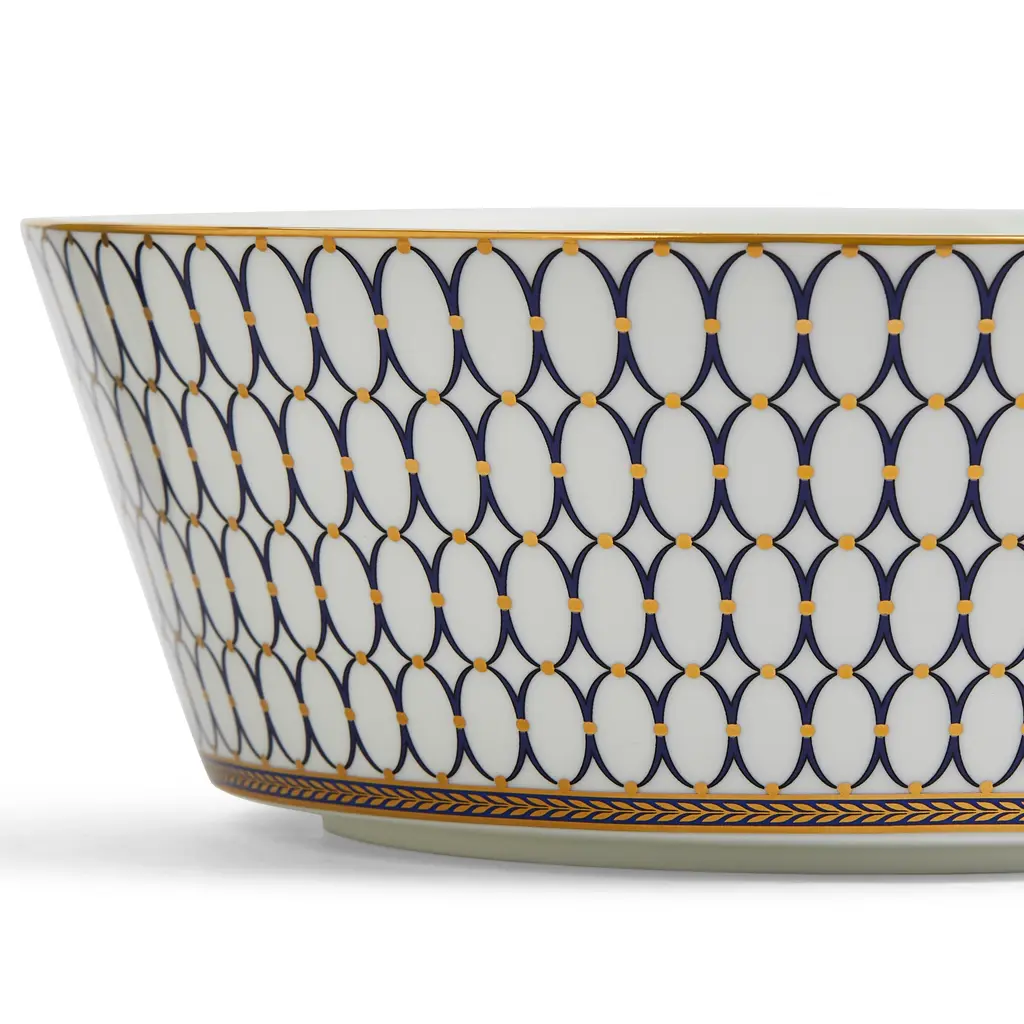 Embellished with intricate garlands, oval links and a fanciful dragon motif, this Wedgwood dinnerware evokes Europe's glorious Renaissance period. Rendered in deep blue and gold to transform any formal meal into a spectacular royal gala.