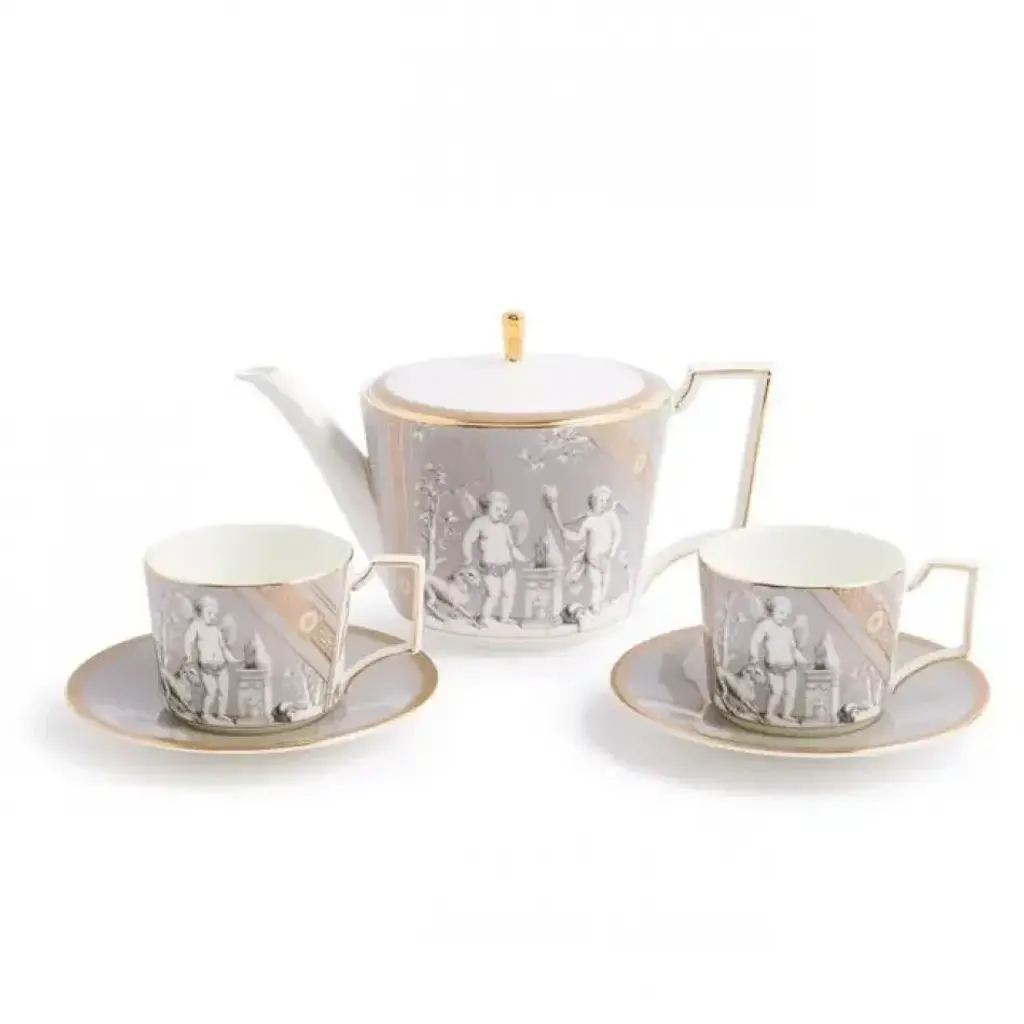 Renaissance Grey Accents Renaissance Grey Teacup Saucer 250ml 8.45oz Set Of 2