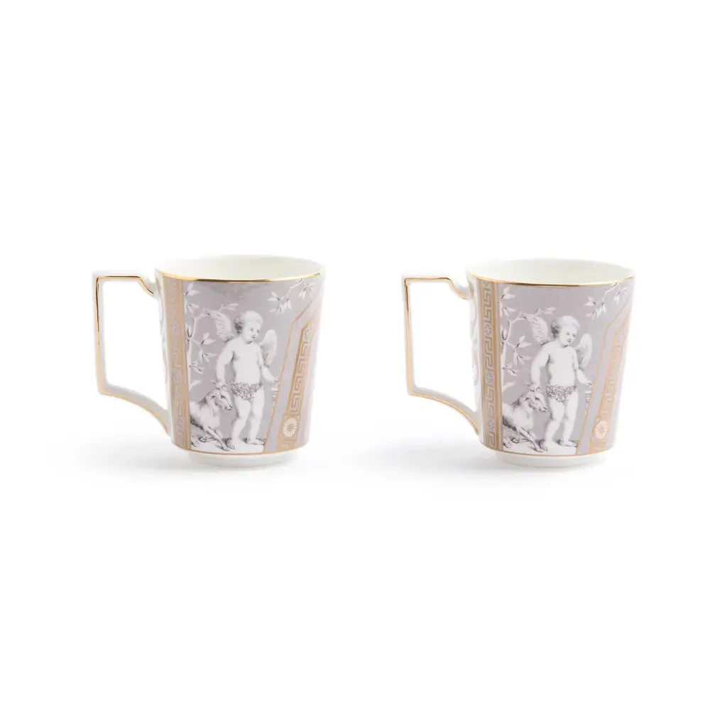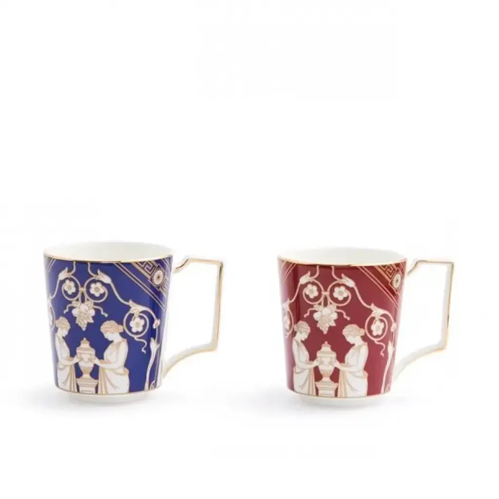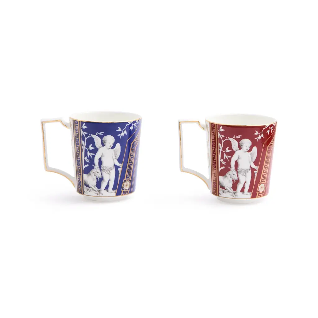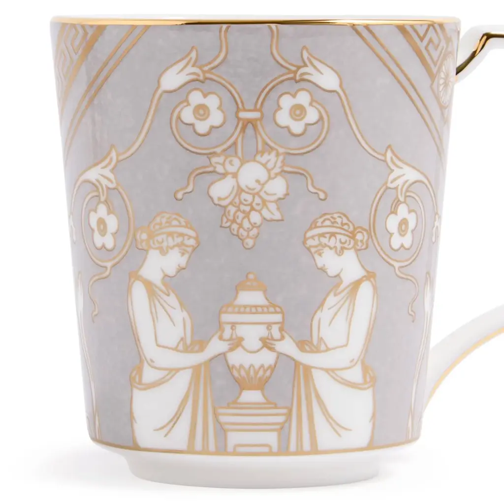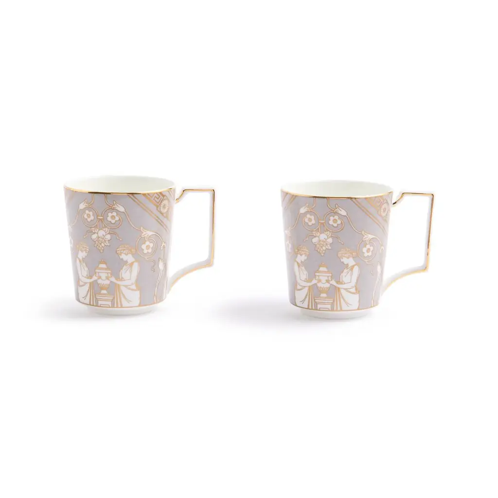 Indulge in the opulence of Wedgwood's Renaissance collection with this set of two finely crafted bone china mugs. The stunning borders, Florentine accents, and iconic cameo-inspired oval motif provide a modern simplicity that exudes luxury. Perfect for sharing a piping-hot beverage, the gold lining and contrasting colors add an extra touch of sophistication. Highlights