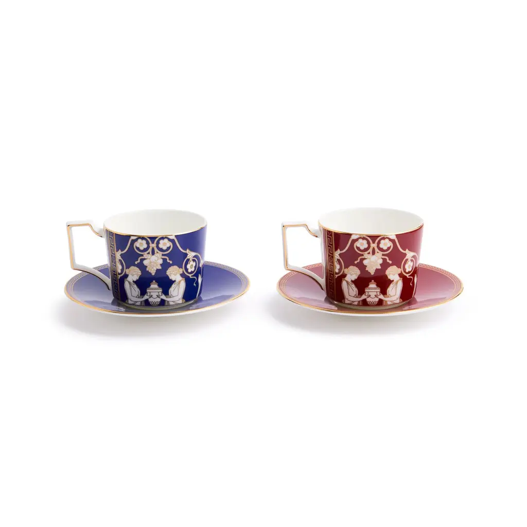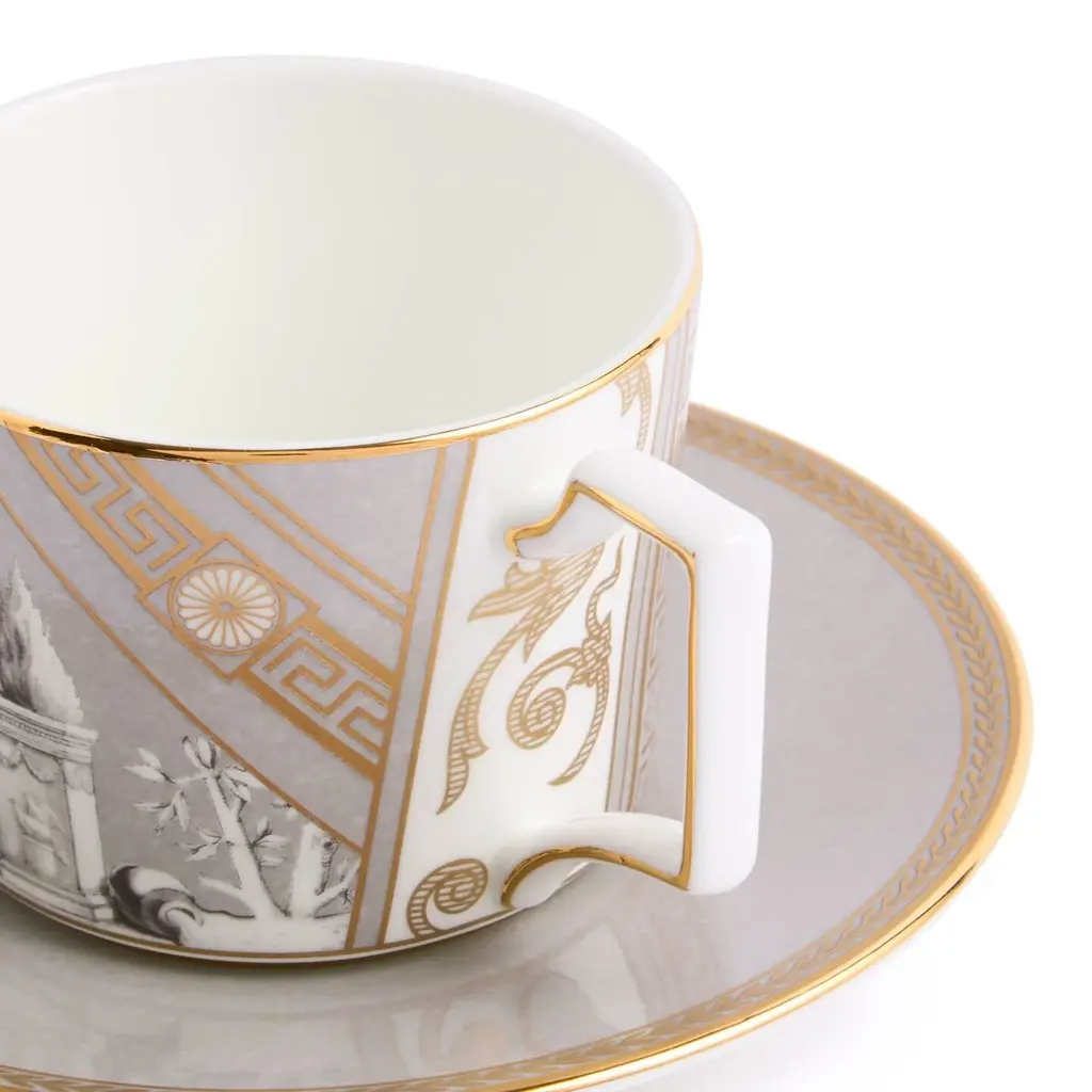 Indulge intotal total luxury with the Renaissance Teacup Saucer (Set of 2), inspired by the iconic Wedgwood cameo. Crafted from fine bone china, its modern simplicity is elevated with rich borders, Florentine accents, and gold handlining. Sip your tea in style with the elegant oval motif and specially chosen Renaissance colors. Highlights
