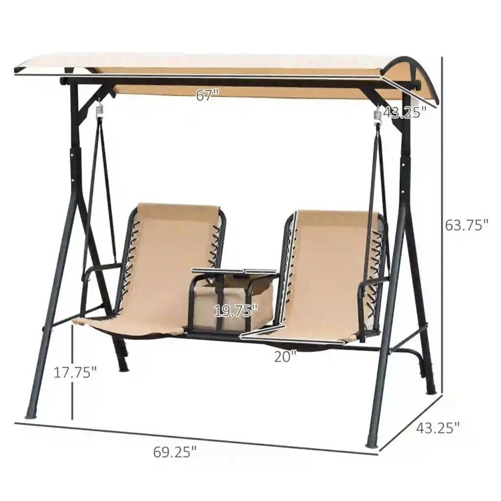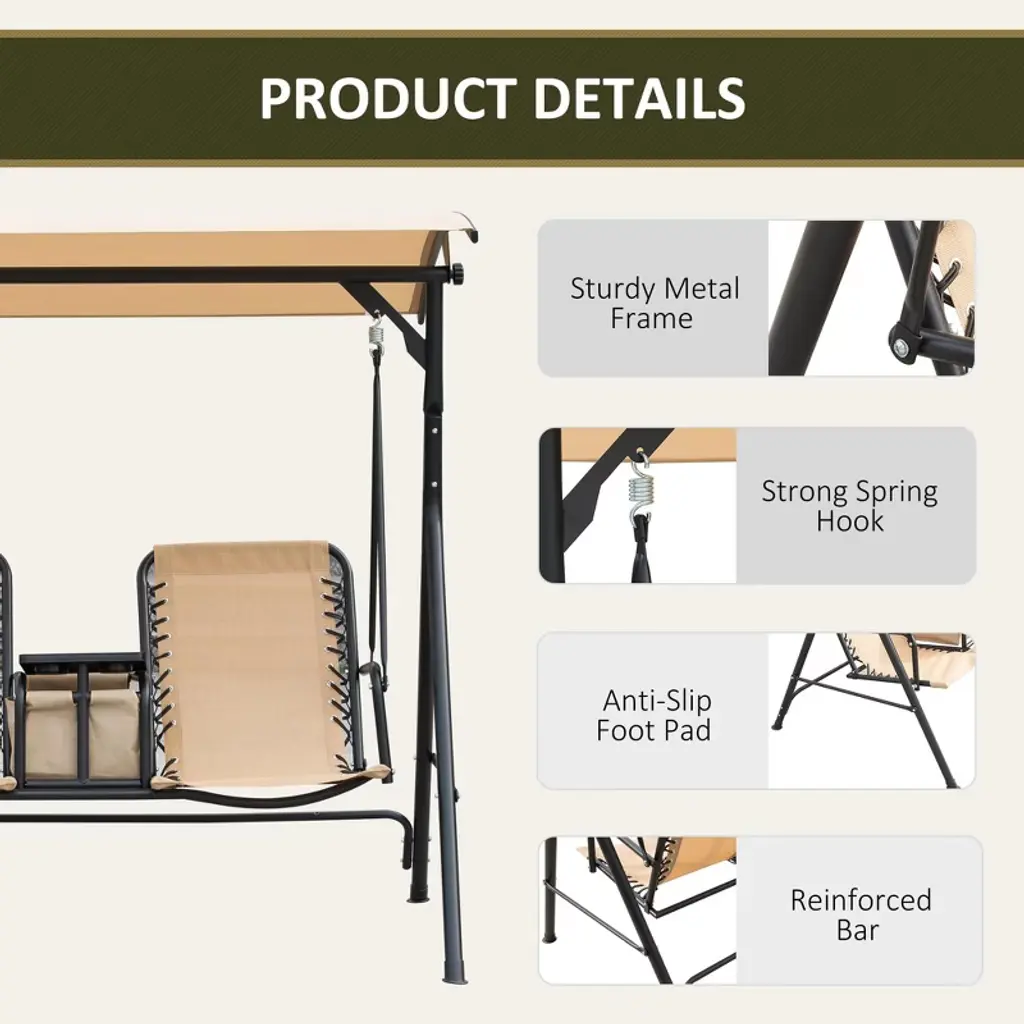 Resenkos 2-person Swing With Canopy, Storage, Cup Holder, Blue, Outdoor Porch Seating, Beige/black