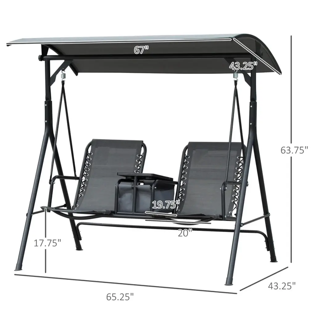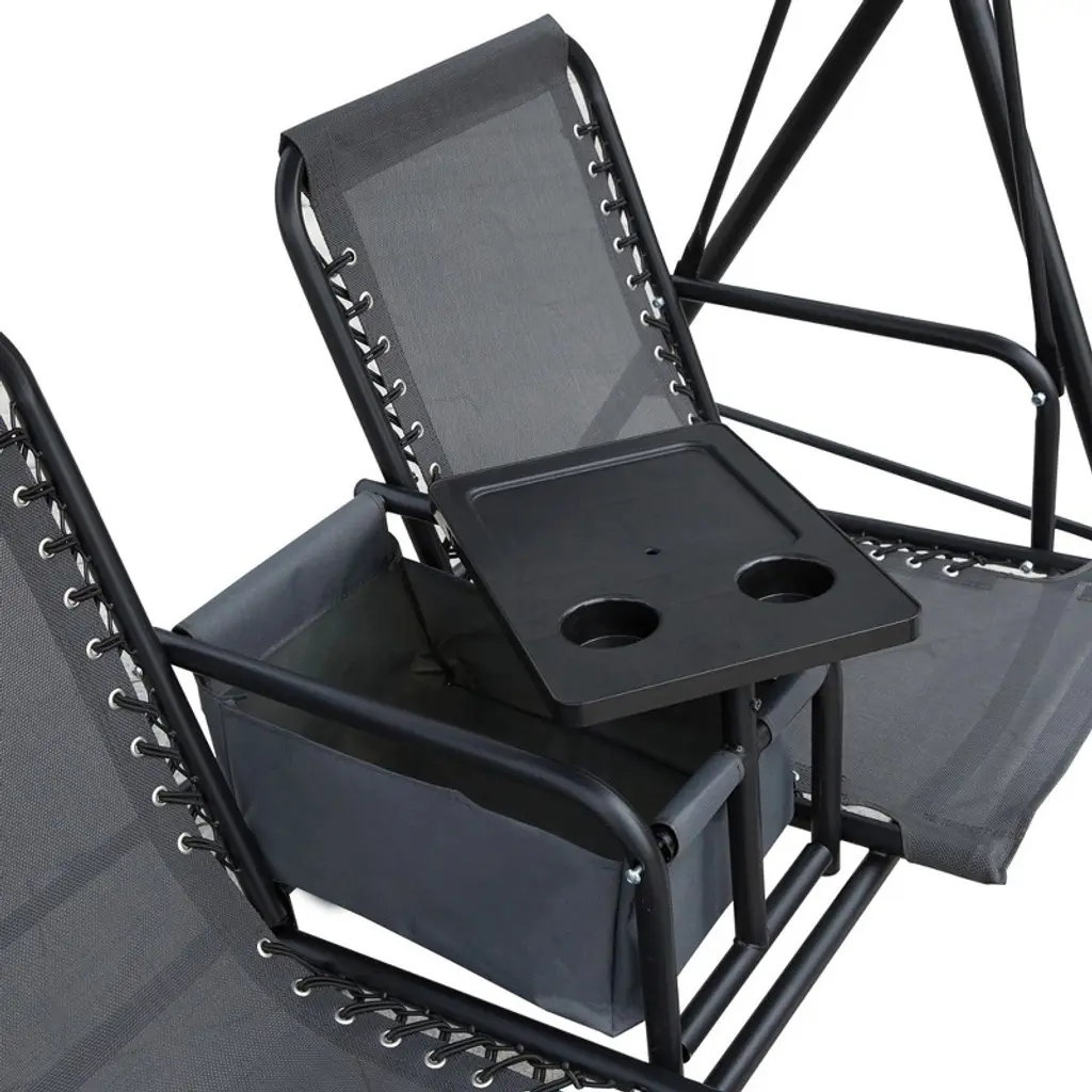 Resenkos 2-person Swing With Canopy, Storage, Cup Holder, Blue, Outdoor Porch Seating, Gray