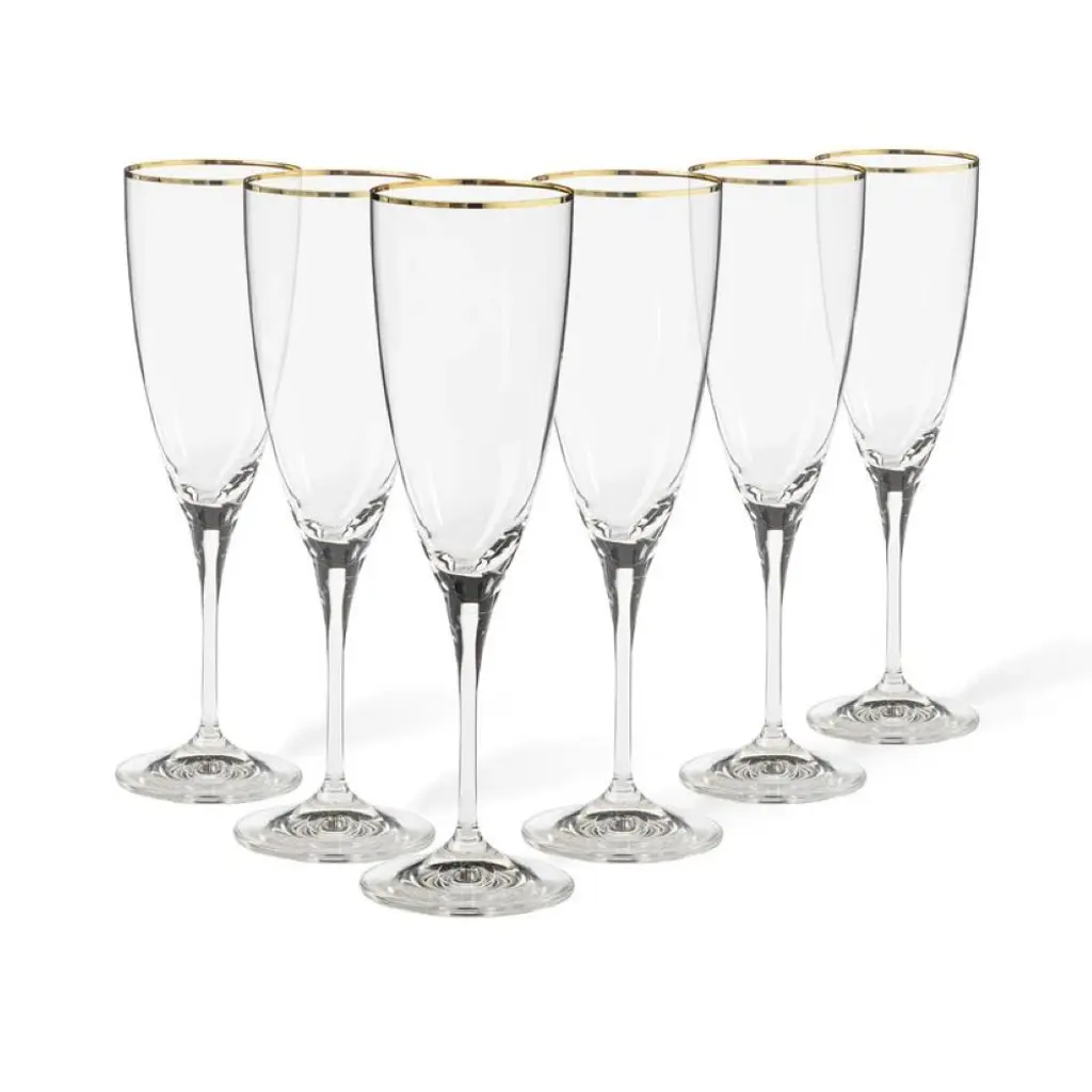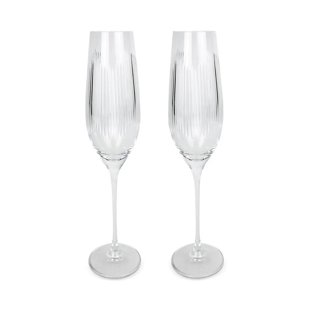 This set of angled flute glasses combines Europe’s legendary crystal glass craftsmanship with striking design. The result is an elegant sparkling wine glass set made with premium materials for perfect performance.