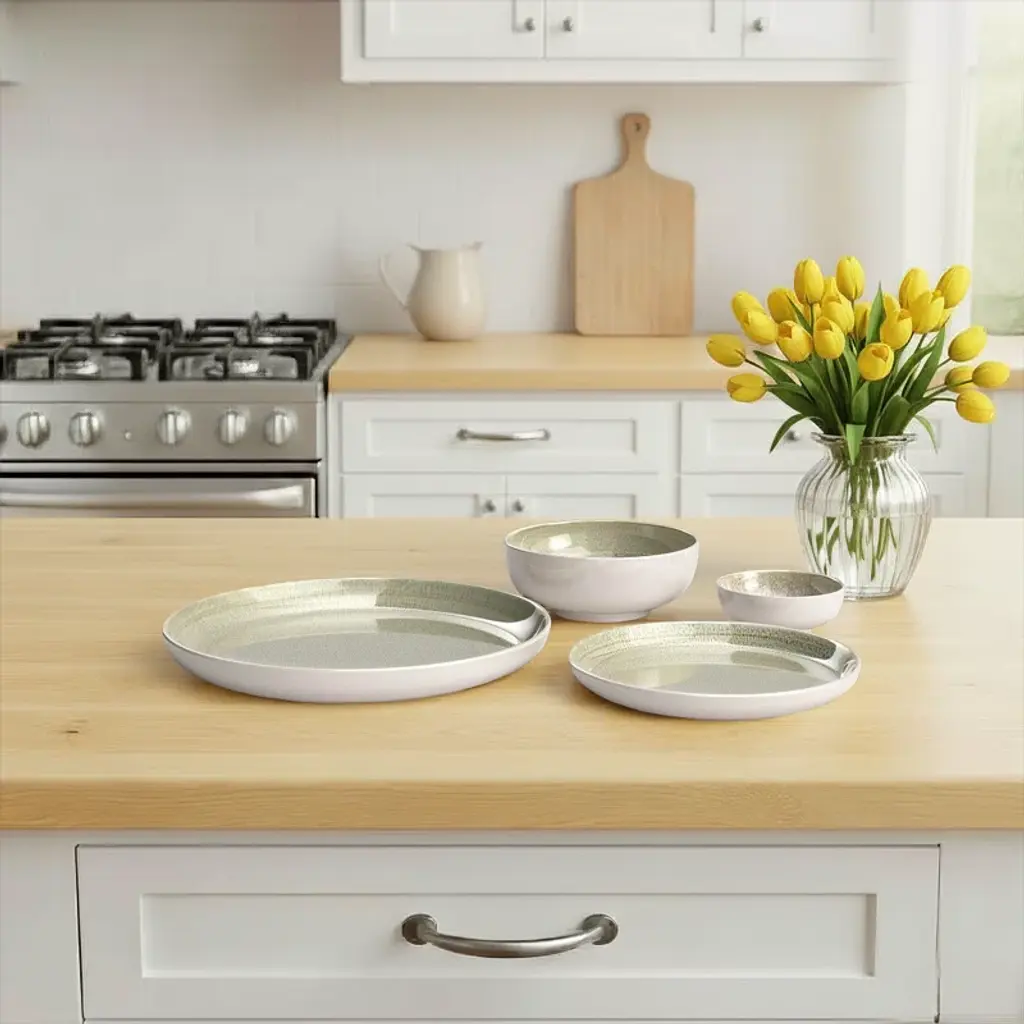 Simple and sophisticated, this Resona 16-piece dinnerware set, service for 4 will be a great addition to your kitchen and home. Its light face and underside give it a beautiful, clean look.