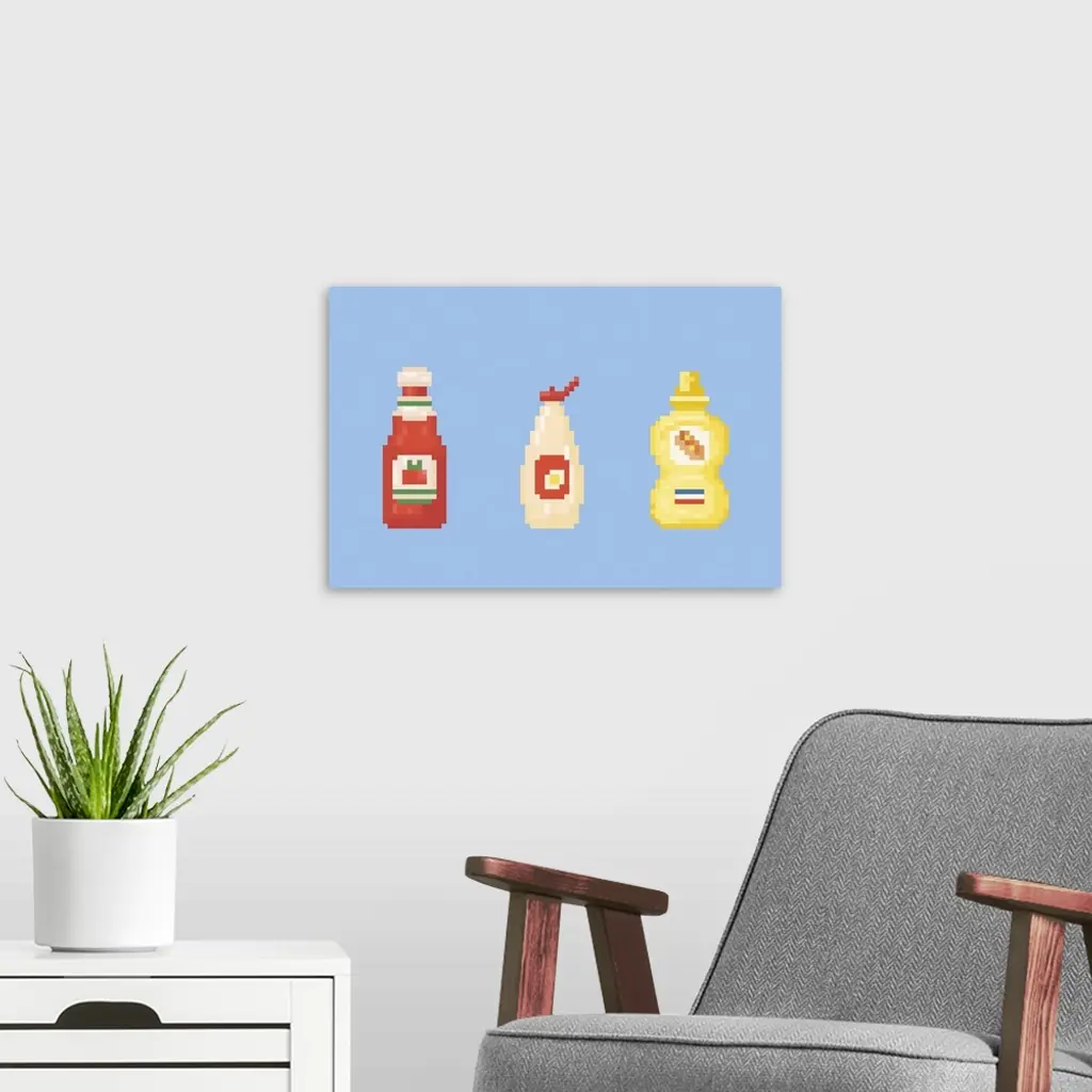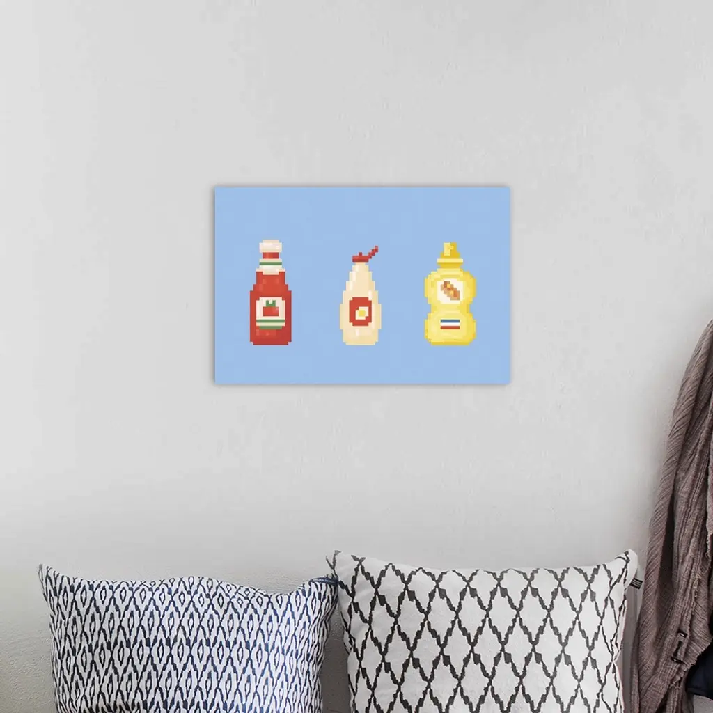 Retro 8-Bit Tomato Ketchup, Mayonnaise And Mustard Sauce Bottles