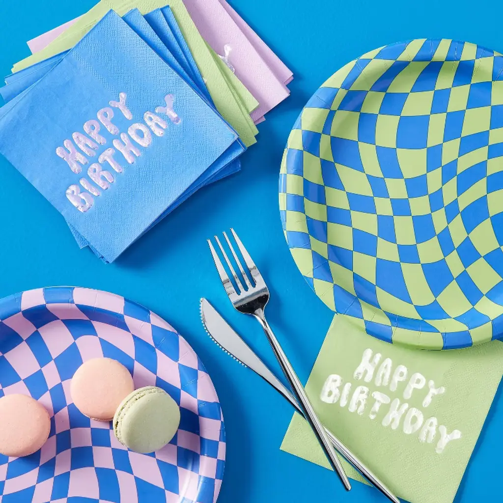 Add a playful touch to your party with the Retro Wavy Checkered Print Dinner Plate 20ct from Spritz™. This pack of 20 stylish and fun dinner plates features an adorable smiley face design, perfect for any gathering. Made of paper, these plates are easy to place and use. Plus, their disposable design makes cleanup a breeze, so you can enjoy the festivities without worrying about the mess. Ideal for birthdays, picnics, or casual get-togethers.Spritz™: Pops of joy that make the moment™.