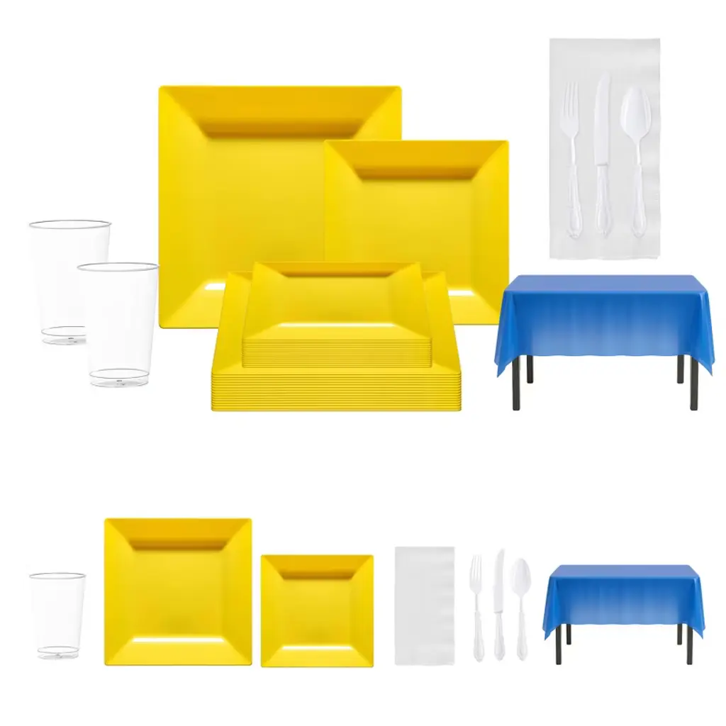 Reusable Cutlery Set Of 4 Plastic Plates, Spoons, Forks And Knives - Orange