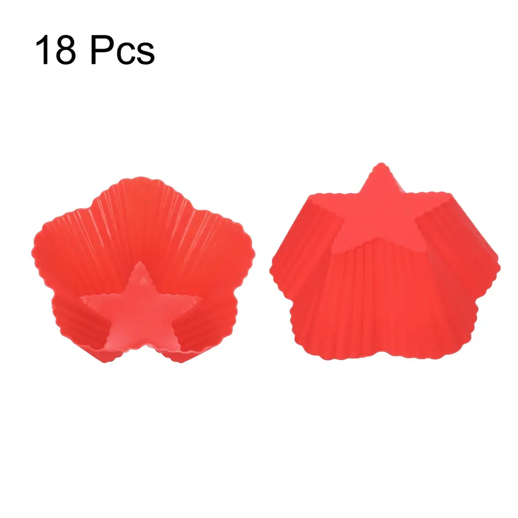 Advantage:Material - This baking cup is made of silicone material, sturdy and flexible, easy to remove, and non-stick, making your baking much easier.Heat Resistant - Withstand temperatures from 446°F (230°C) to-40°F (-40°C). Safe for use in the dishwasher, refrigerator, freezer, microwave, air fryer.Easy To Use - Spray with a little oil before using, then simply place the cupcake liner on a cookie sheet, fill and bake, and release donut easily.Easy To Clean - Just rinse silicone muffins cups with soapy water after each use, and then let them air dry. Also, you can put them in the dishwasher. No more scraping your treats out from the liner.Wide Application - Great for making tarts, baking muffins, and preparing frozen foods, cupcakes, pastry, desserts on baking sheets.Occasion - Widely applied for birthday parties, bachelorette parties, weddings, and other family gatherings to prepare tea desserts.Specification:Material: SiliconeColor: RedShape: StarOpen Diameter: 7cm/2.75inch;Bottom Length: 3.8cm/1.5inch;Bottom Diameter: 4.2cm/1.65inch;Height: 3cm/1.2inch; Package Included: 18Pcs x silicone cupcake liners