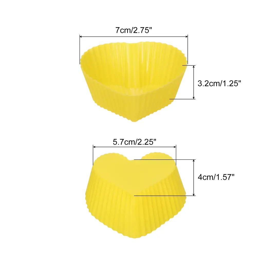 Advantage:Material - This baking cup is made of silicone material, sturdy and flexible, easy to remove, and non-stick, making your baking much easier.Heat Resistant - Withstand temperatures from 446°F (230°C) to-40°F (-40°C). Safe for use in the dishwasher, refrigerator, freezer, microwave, air fryer.Easy To Use - Spray with a little oil before using, then simply place the cupcake liner on a cookie sheet, fill and bake, and release donut easily.Easy To Clean - Just rinse silicone muffins cups with soapy water after each use, and then let them air dry. Also, you can put them in the dishwasher. No more scraping your treats out from the liner.Wide Application - Great for making tarts, baking muffins, and preparing frozen foods, cupcakes, pastry, desserts on baking sheets.Occasion - Widely applied for birthday parties, bachelorette parties, weddings, and other family gatherings to prepare tea desserts.Specification:Material: SiliconeColor: RedShape: HeartOpen Diameter: 7cm/2.75inch;Bottom Length: 4cm/1.57inch;Bottom Diameter: 5.7cm/2.25inch;Height: 3.2cm/1.25inch;Package Included: 18Pcs x silicone cupcake liners