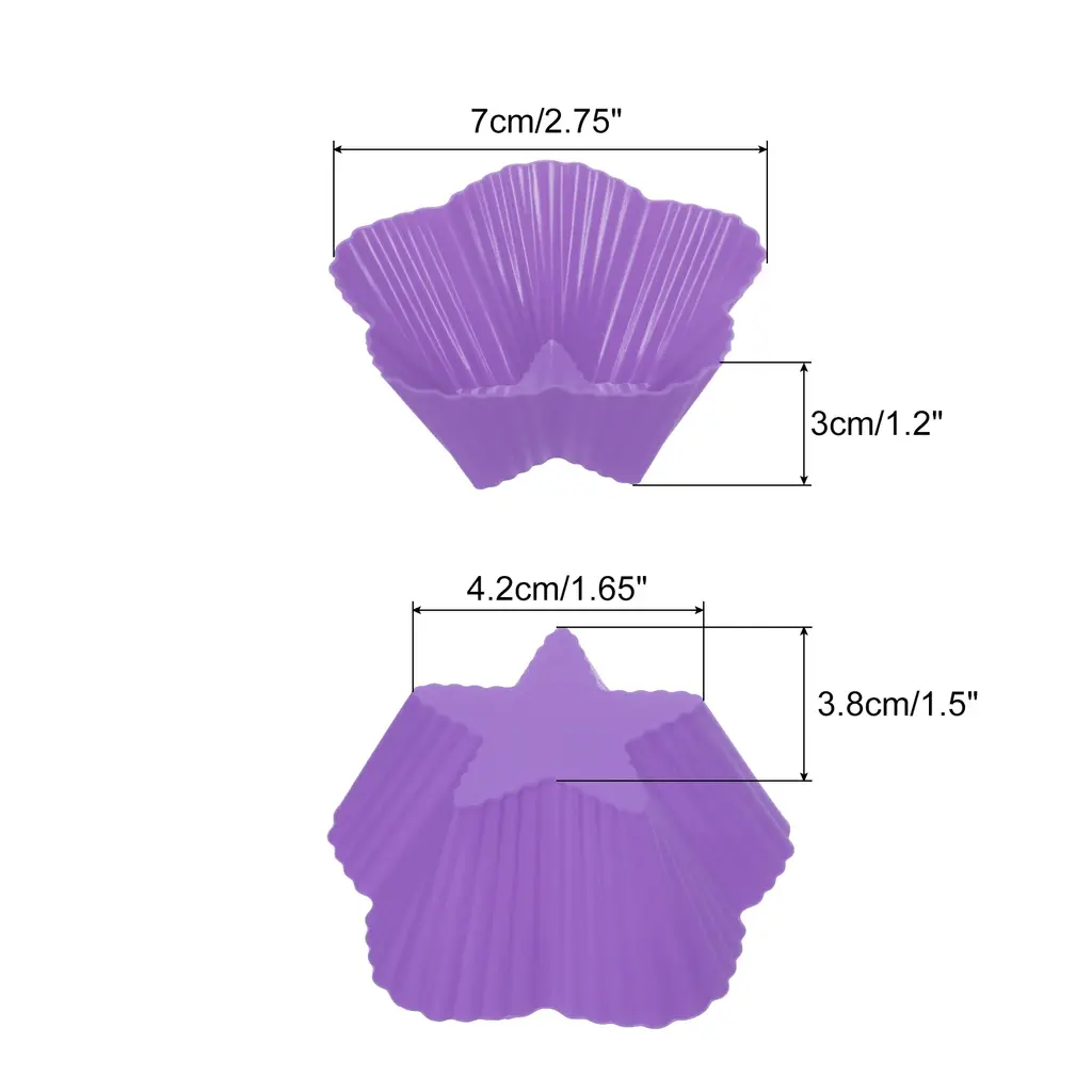 Advantage:Material - This baking cup is made of silicone material, sturdy and flexible, easy to remove, and non-stick, making your baking much easier.Heat Resistant - Withstand temperatures from 446°F (230°C) to-40°F (-40°C). Safe for use in the dishwasher, refrigerator, freezer, microwave, air fryer.Easy To Use - Spray with a little oil before using, then simply place the cupcake liner on a cookie sheet, fill and bake, and release donut easily.Easy To Clean - Just rinse silicone muffins cups with soapy water after each use, and then let them air dry. Also, you can put them in the dishwasher. No more scraping your treats out from the liner.Wide Application - Great for making tarts, baking muffins, and preparing frozen foods, cupcakes, pastry, desserts on baking sheets.Occasion - Widely applied for birthday parties, bachelorette parties, weddings, and other family gatherings to prepare tea desserts.Specification:Material: SiliconeColor: RedShape: StarOpen Diameter: 7cm/2.75inch;Bottom Length: 3.8cm/1.5inch;Bottom Diameter: 4.2cm/1.65inch;Height: 3cm/1.2inch; Package Included: 18Pcs x silicone cupcake liners