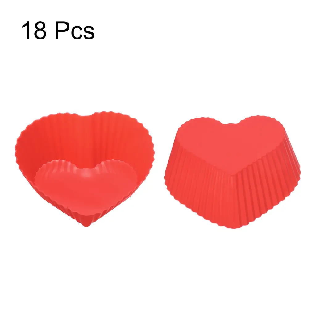 Advantage:Material - This baking cup is made of silicone material, sturdy and flexible, easy to remove, and non-stick, making your baking much easier.Heat Resistant - Withstand temperatures from 446°F (230°C) to-40°F (-40°C). Safe for use in the dishwasher, refrigerator, freezer, microwave, air fryer.Easy To Use - Spray with a little oil before using, then simply place the cupcake liner on a cookie sheet, fill and bake, and release donut easily.Easy To Clean - Just rinse silicone muffins cups with soapy water after each use, and then let them air dry. Also, you can put them in the dishwasher. No more scraping your treats out from the liner.Wide Application - Great for making tarts, baking muffins, and preparing frozen foods, cupcakes, pastry, desserts on baking sheets.Occasion - Widely applied for birthday parties, bachelorette parties, weddings, and other family gatherings to prepare tea desserts.Specification:Material: SiliconeColor: RedShape: HeartOpen Diameter: 7cm/2.75inch;Bottom Length: 4cm/1.57inch;Bottom Diameter: 5.7cm/2.25inch;Height: 3.2cm/1.25inch;Package Included: 18Pcs x silicone cupcake liners
