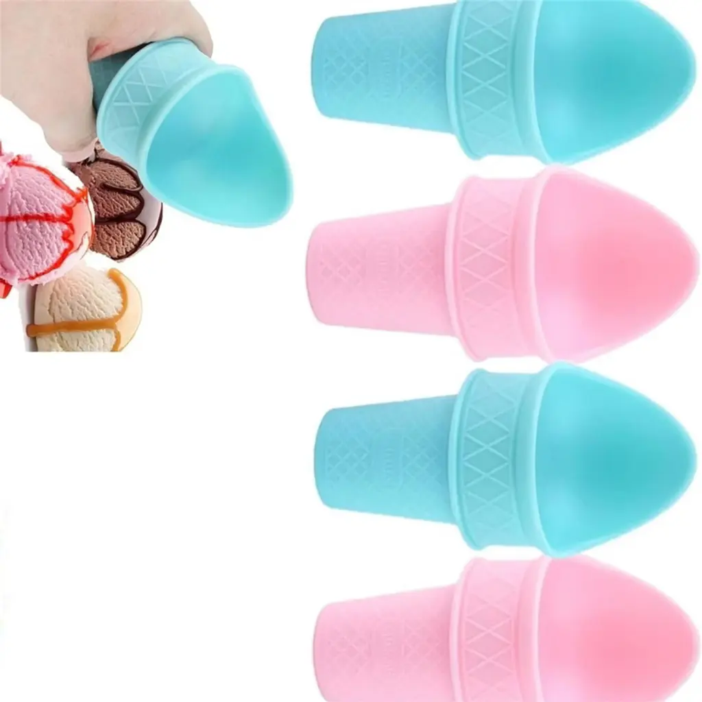 Product DescriptionAdd a touch of charm to your desserts with these fun and functional ice cream cone holders. Made from food-grade silicone, they’re safe, dishwasher-friendly, and easy to clean. Available in blue and pink, these mini stands are perfect for serving ice cream, candies, or treats, making them an eye-catching addition to any party or event. Lightweight and portable, they’re ideal for on-the-go enjoyment. A great gift and a versatile must-have for weddings, birthdays, or any celebration!Product InformationProduct Name: Ice Cream ScoopsColor: Pink/ BlueItem Weight: 3.53 ouncesProduct Dimensions: 3.94 x 2.09 x 0.1 inchesMaterial: SiliconeIs Dishwasher Safe: YesPacking List: 4 pcs Ice Cream ScoopsNotes: Manual measurement has been used,there may be some reasonable error. All the pictures are taken by actual samples, slight chromatic aberration may occur due to lighting or display.