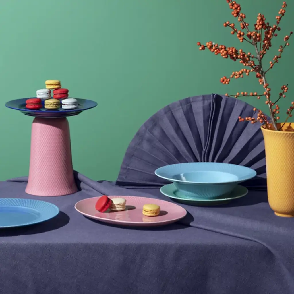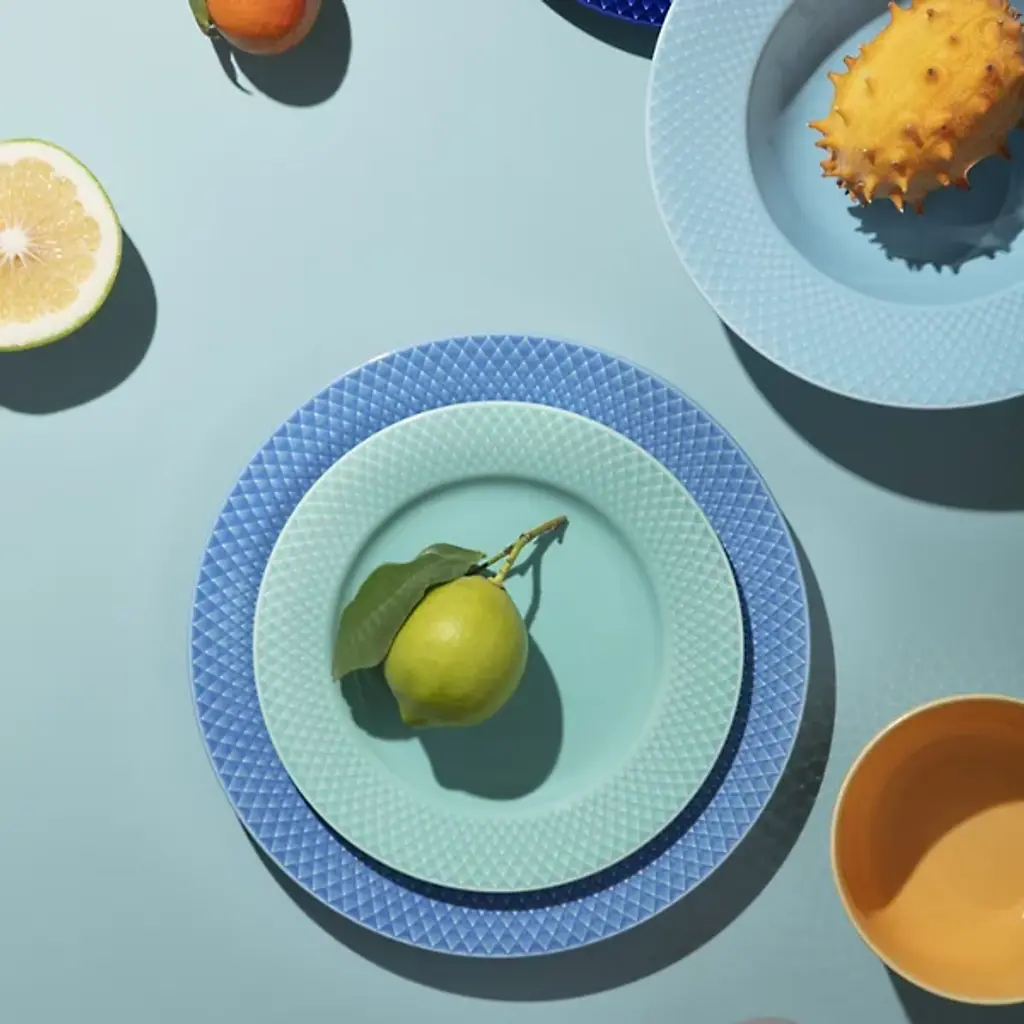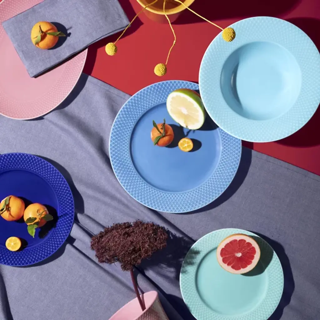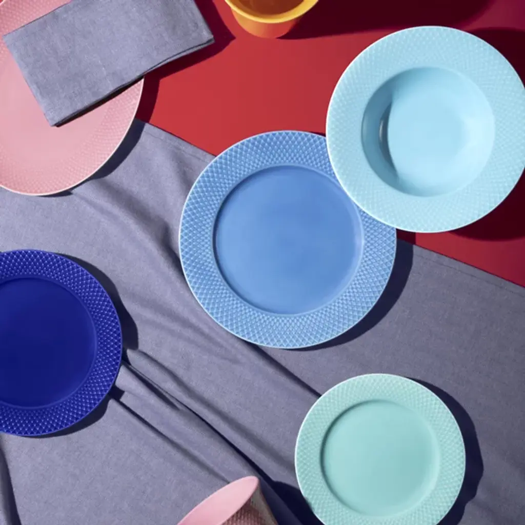 The Rhombe Color Dinner Plate, Set of 4 from Lyngby Porcelaen brings playful refinement to the table with hues that stand boldly on their own or mingle with the other Rhombe items in classic white. Designed in 2022 by Nordentoft, Stilleben v/Reckweg, each porcelain plate combines refined form with modern expression, contrasting the tactile texture of the rim with a smooth center. Dishwasher- and microwave-safe, the set of four is equally suited for daily meals or more formal gatherings, merging utility with vibrant design.