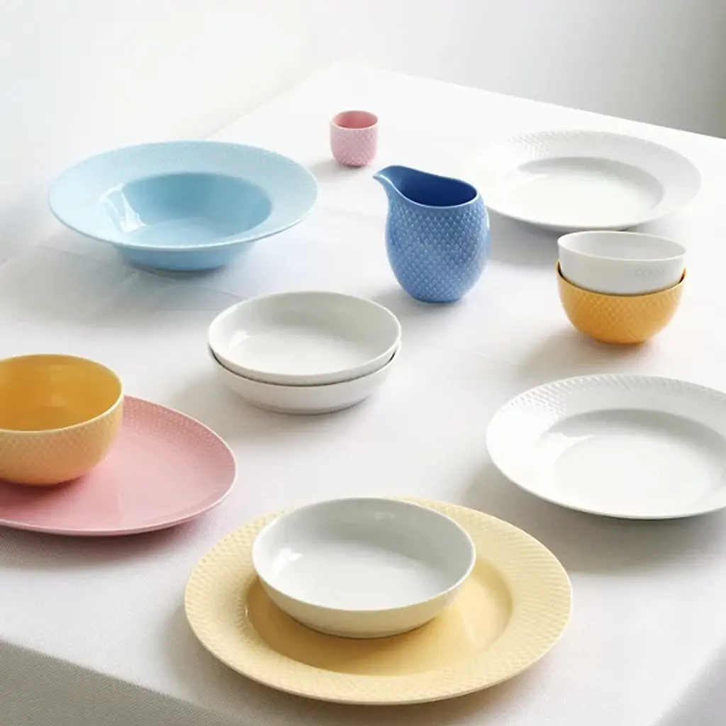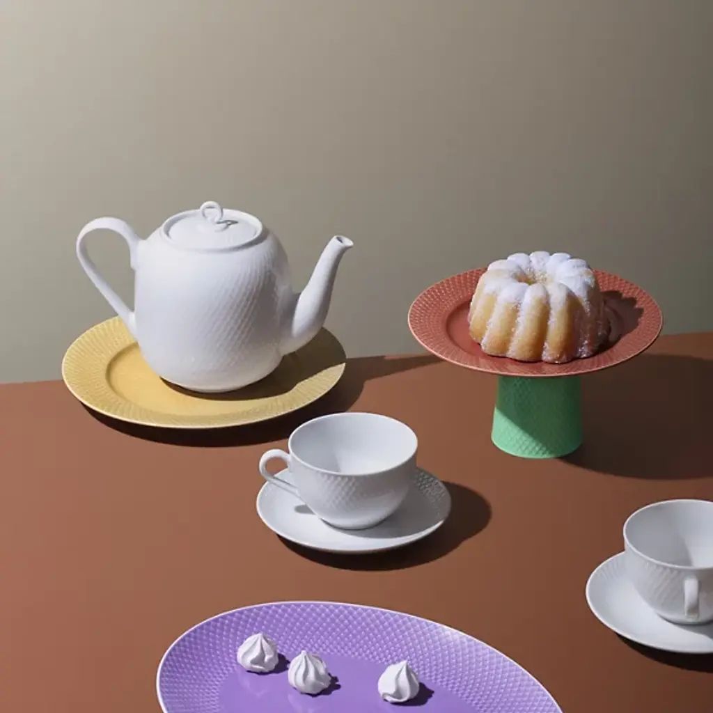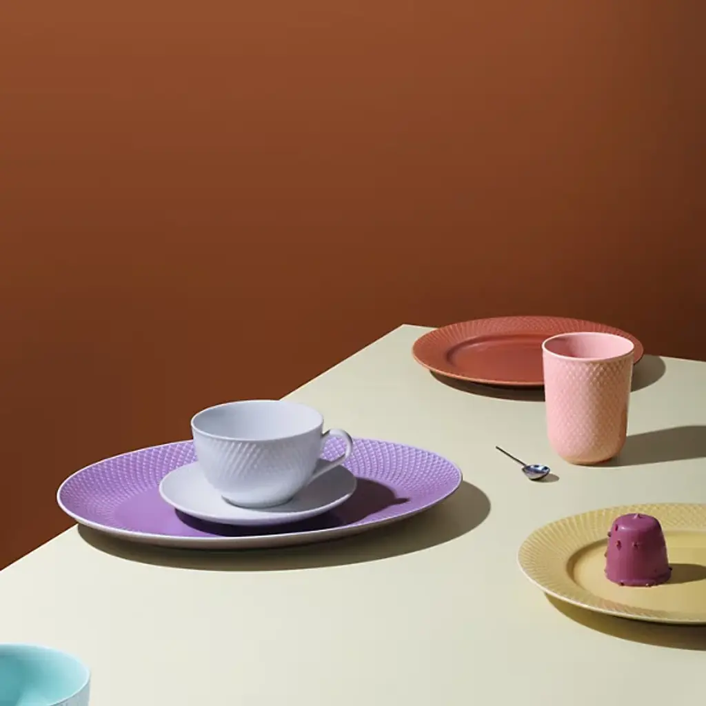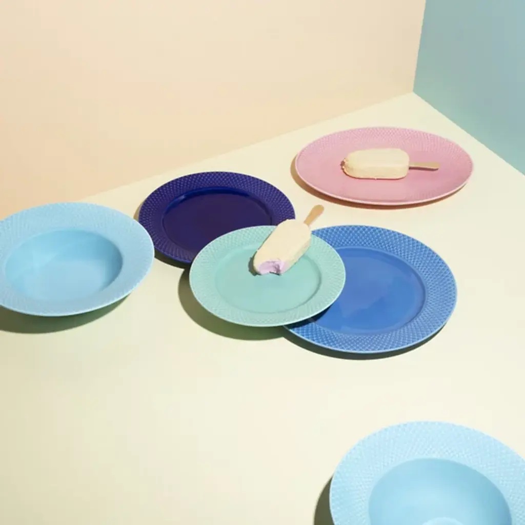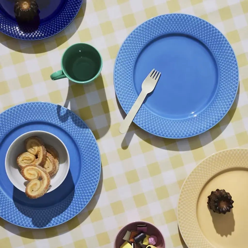 The Rhombe Color Dinner Plate, Set of 4 from Lyngby Porcelaen brings playful refinement to the table with hues that stand boldly on their own or mingle with the other Rhombe items in classic white. Designed in 2022 by Nordentoft, Stilleben v/Reckweg, each porcelain plate combines refined form with modern expression, contrasting the tactile texture of the rim with a smooth center. Dishwasher- and microwave-safe, the set of four is equally suited for daily meals or more formal gatherings, merging utility with vibrant design.
