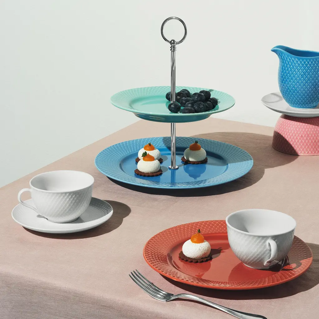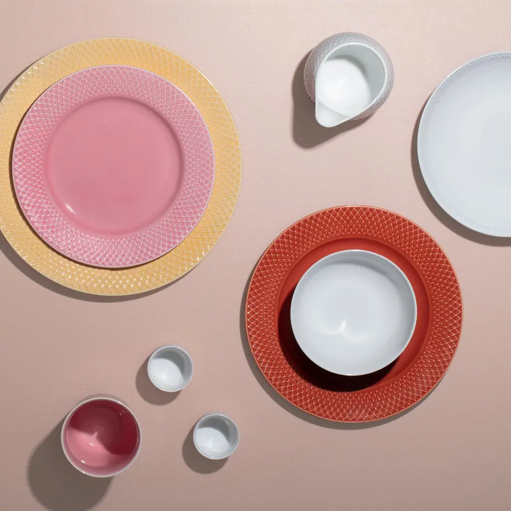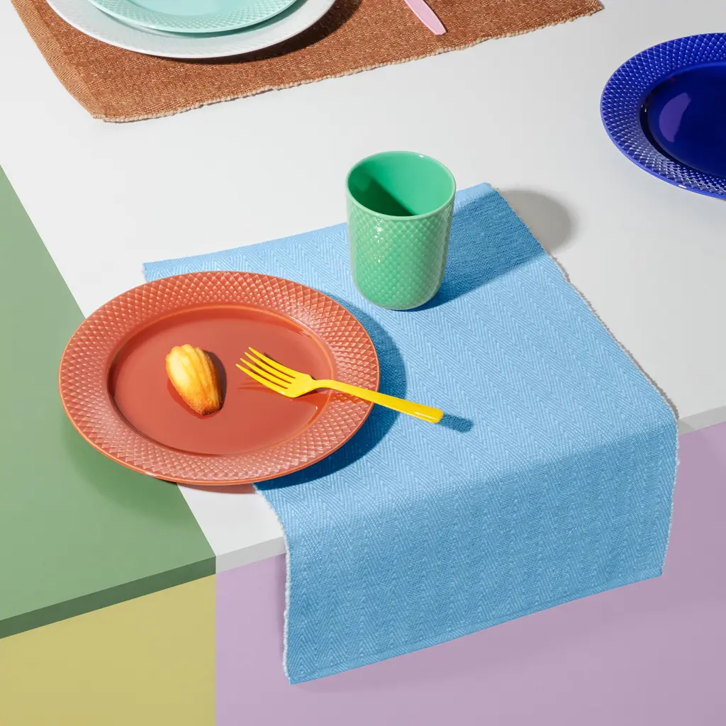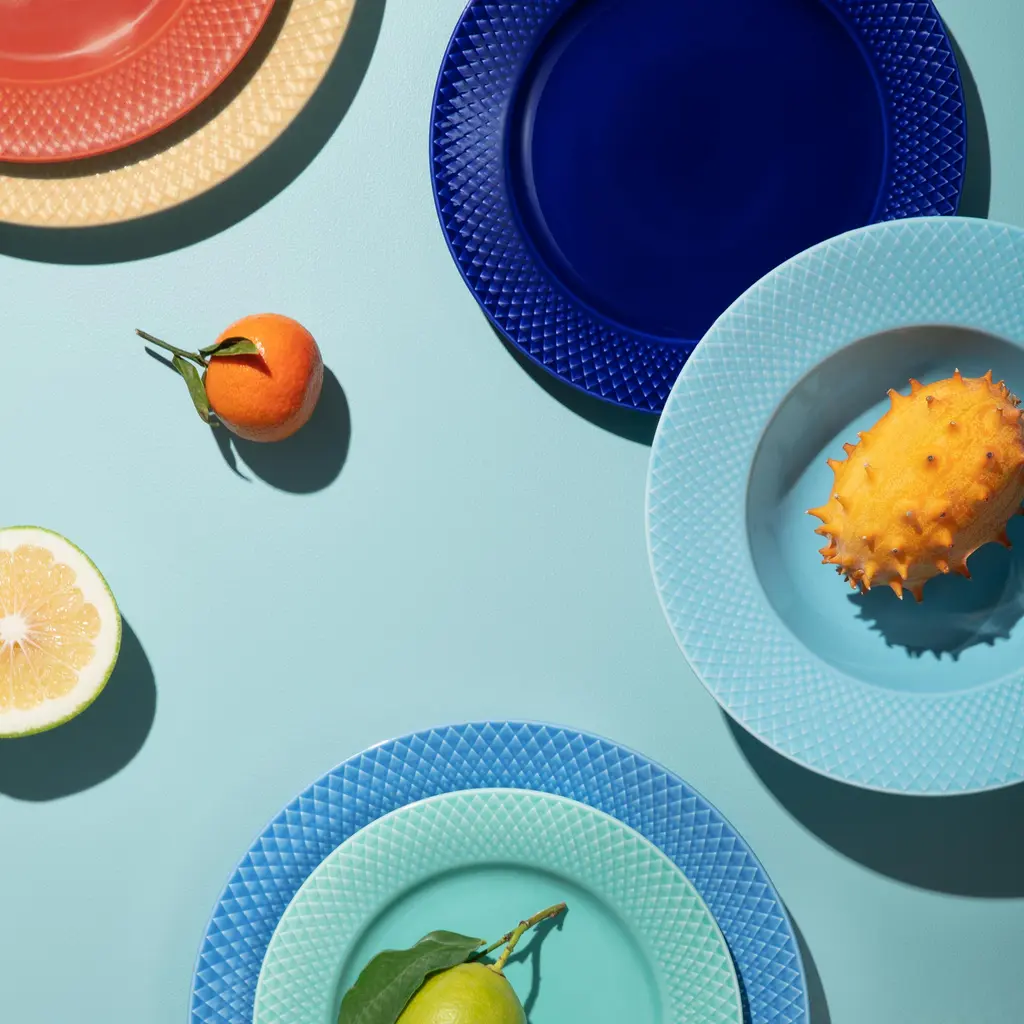 The Rhombe Color Lunch Plate brings Lyngby Porcelæn’s signature rhombus relief to a compact 9.1″ size made for salads, sandwiches and small mains. The tactile border frames food and adds subtle depth, while the gently raised rim helps contain dressings and juices and stacks neatly in the cupboard. Part of the Mix & Match universe, it works as a bold accent or pairs effortlessly with the white Rhombe service. Crafted in fine porcelain with crisp detailing and a smooth glaze, it’s available in two hues—Terracotta for warmth and Dark Blue for a cool, modern tone—so you can set a table that feels considered, everyday or elevated.