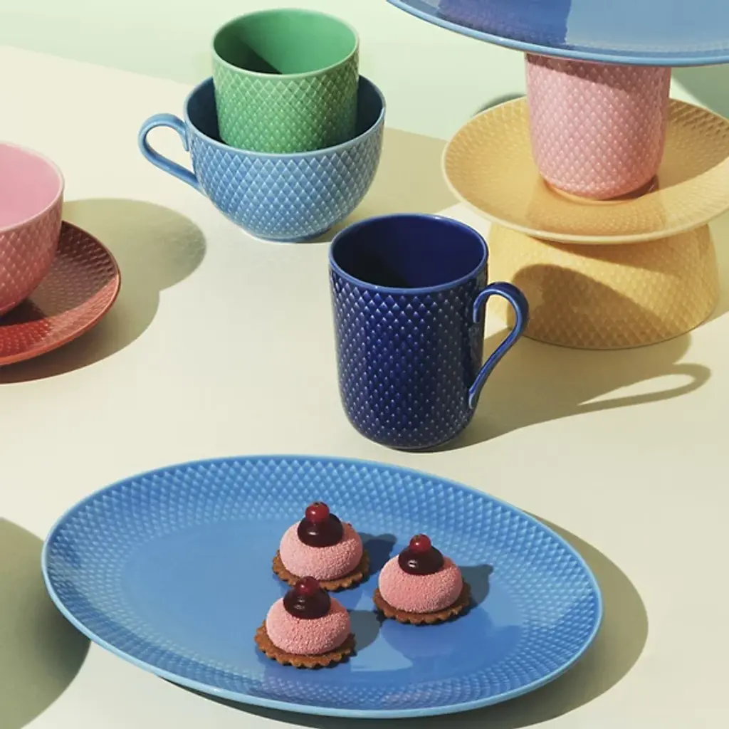 The Rhombe Color Mug with Handle, Set of 4 from Lyngby Porcelaen reflects the brand’s tradition of minimalist perfection, its clean lines proving its lasting influence on Danish design. Conceived by Ditte Reckweg and Jelena Schou Nordentoft of Stilleben, each porcelain mug pairs a textured exterior with a slightly flaring rim and smooth, slender handle that feels weighty in the hand. Available in expressive hues that complement the classic white Rhombe series, these mugs are dishwasher- and microwave-safe, offering practicality and a modern character for everyday use.