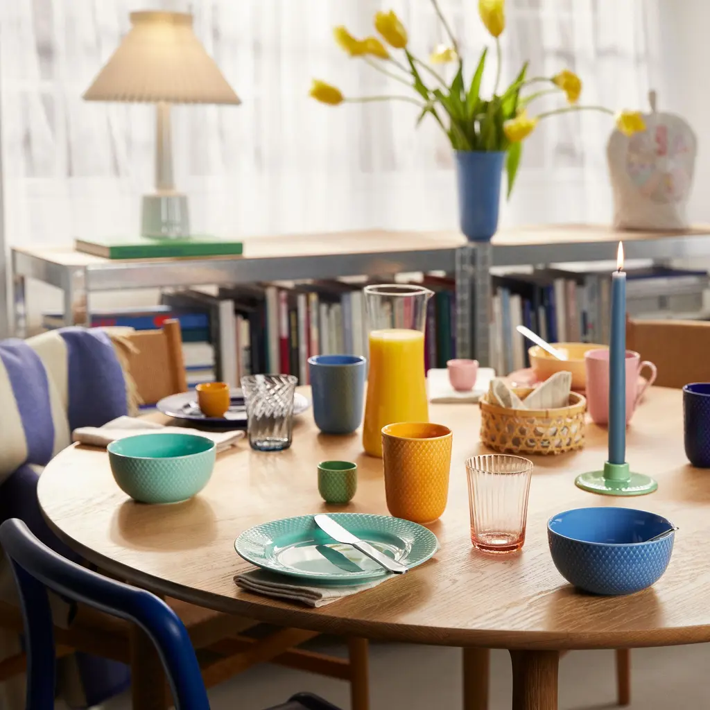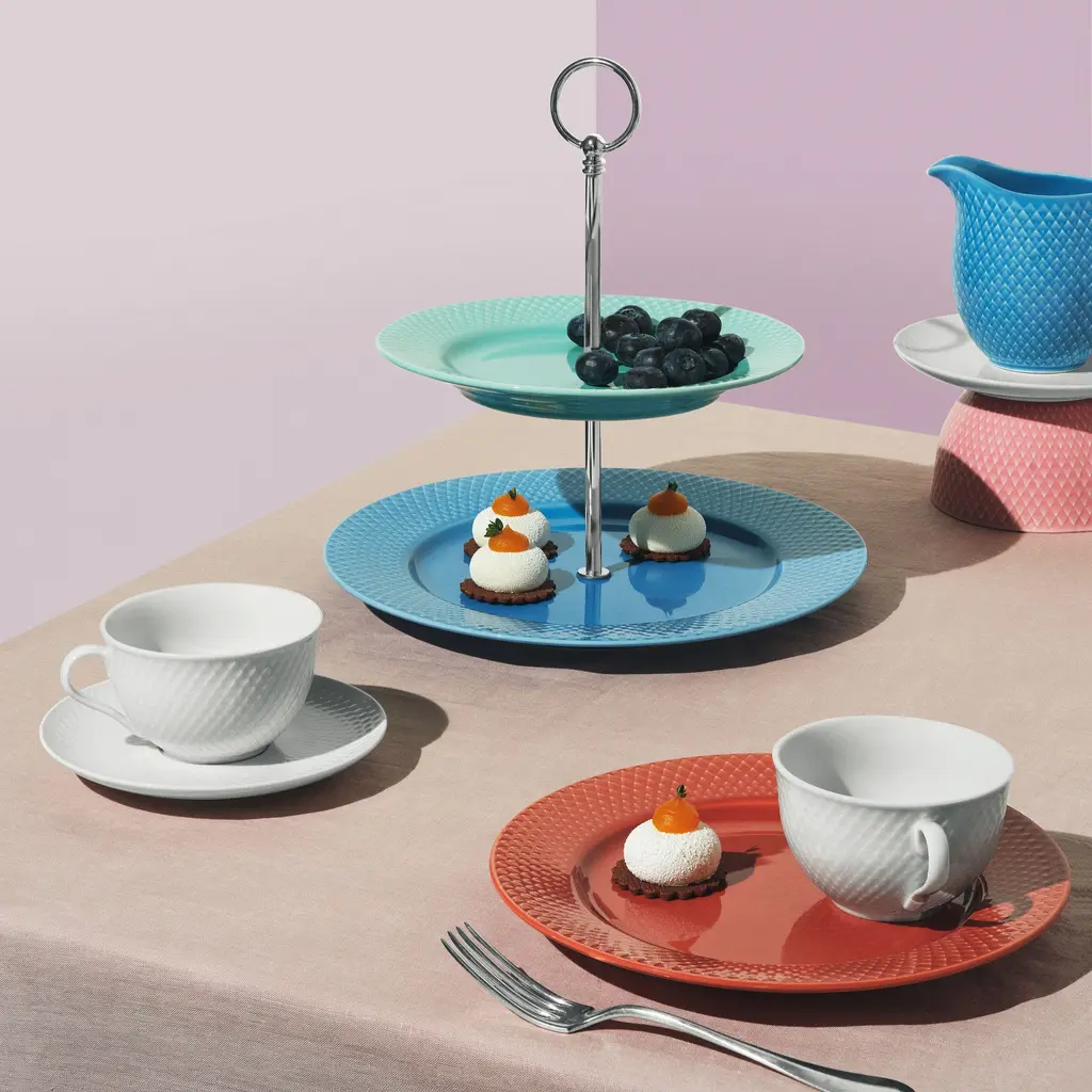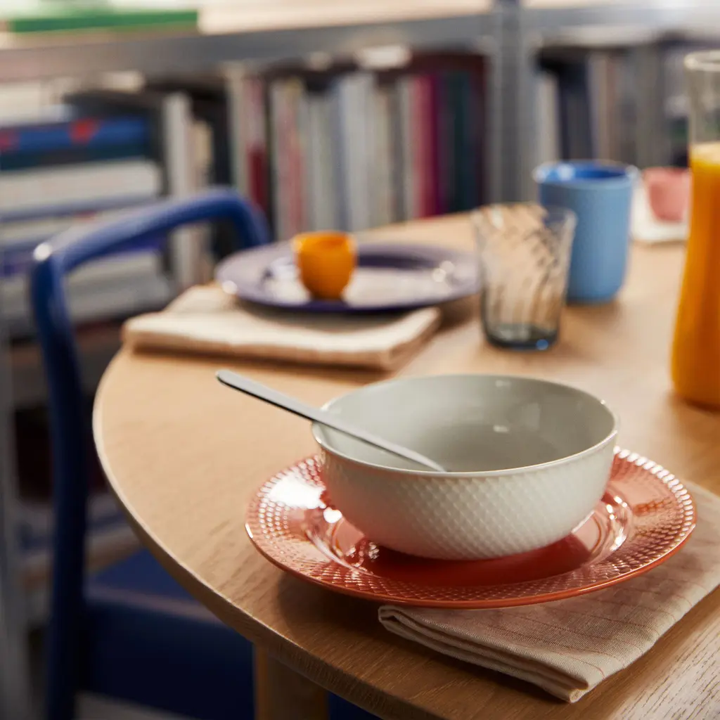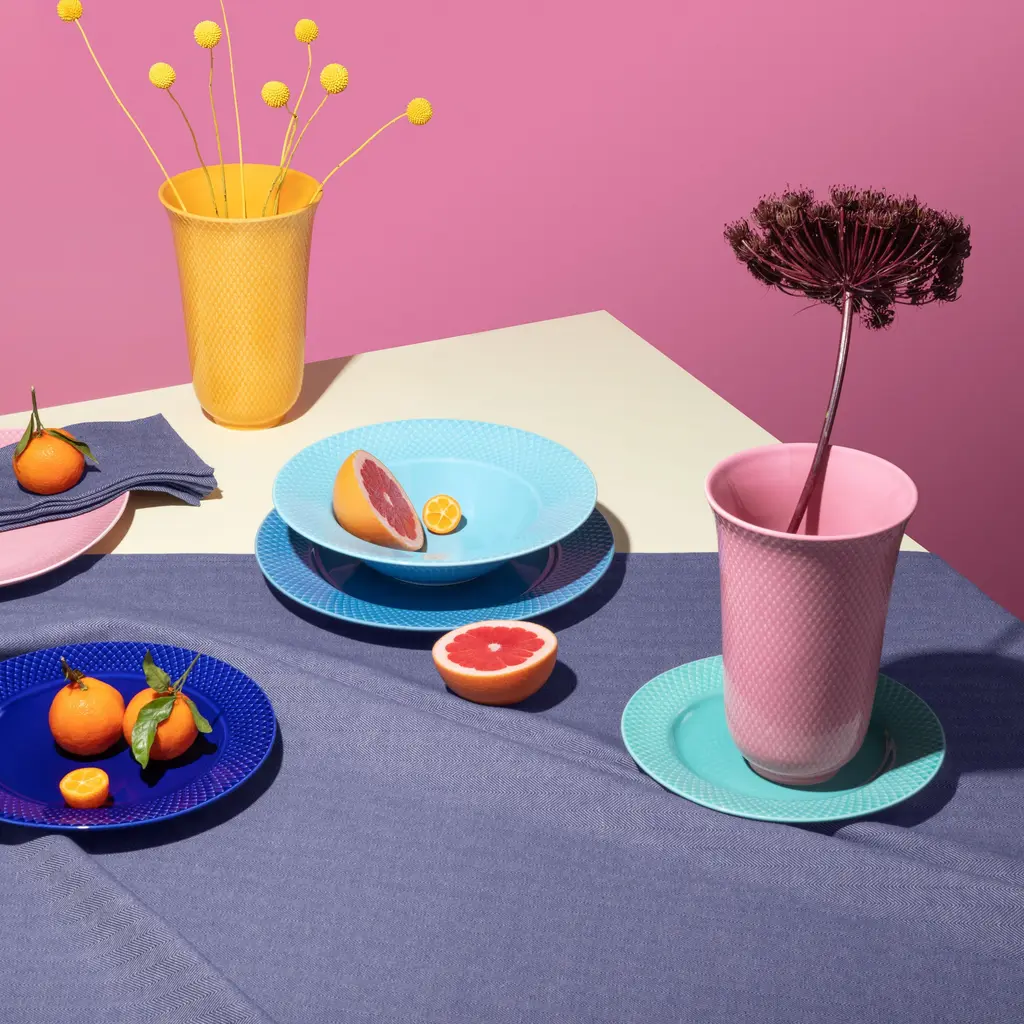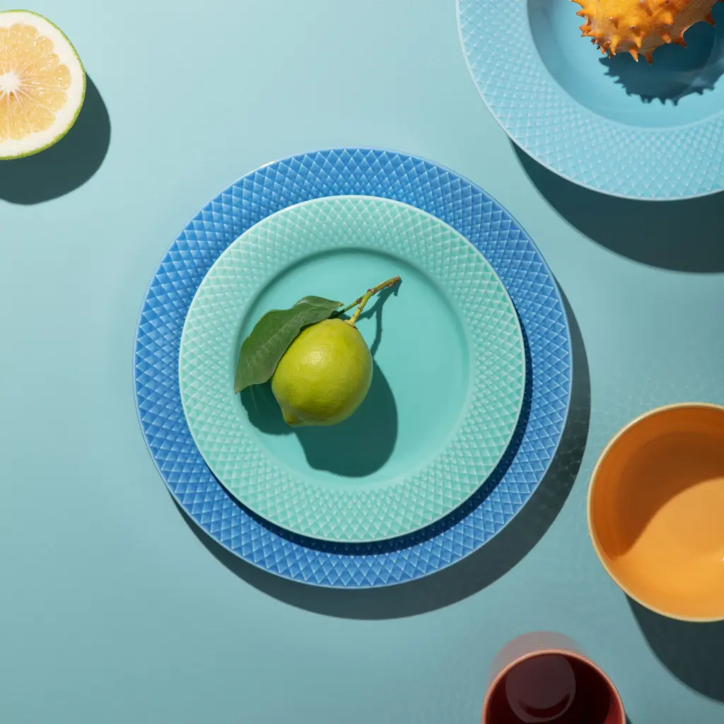 The Rhombe 4-piece plate set, adds a refreshing and vibrant element to your table. These medium-sized plates are ideal for lunches, side dishes, or desserts. Featuring the iconic Rhombe pattern, the serene aqua color pairs beautifully with other Rhombe Color or classic white pieces, offering endless possibilities for a stylish and personalized table setting. Features