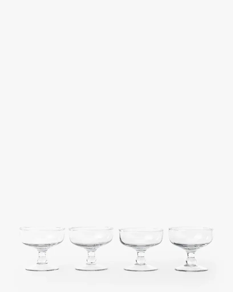 Bringing a romantic touch to dining classics, the Ribbed Short Drinking Glasses (Set of 4) are subtly detailed with a ribbed design that sparks a sense of thoughtfulness. In a simple tumbler-style shape, these glasses blend seamlessly with your table settings for both versatility and charm.