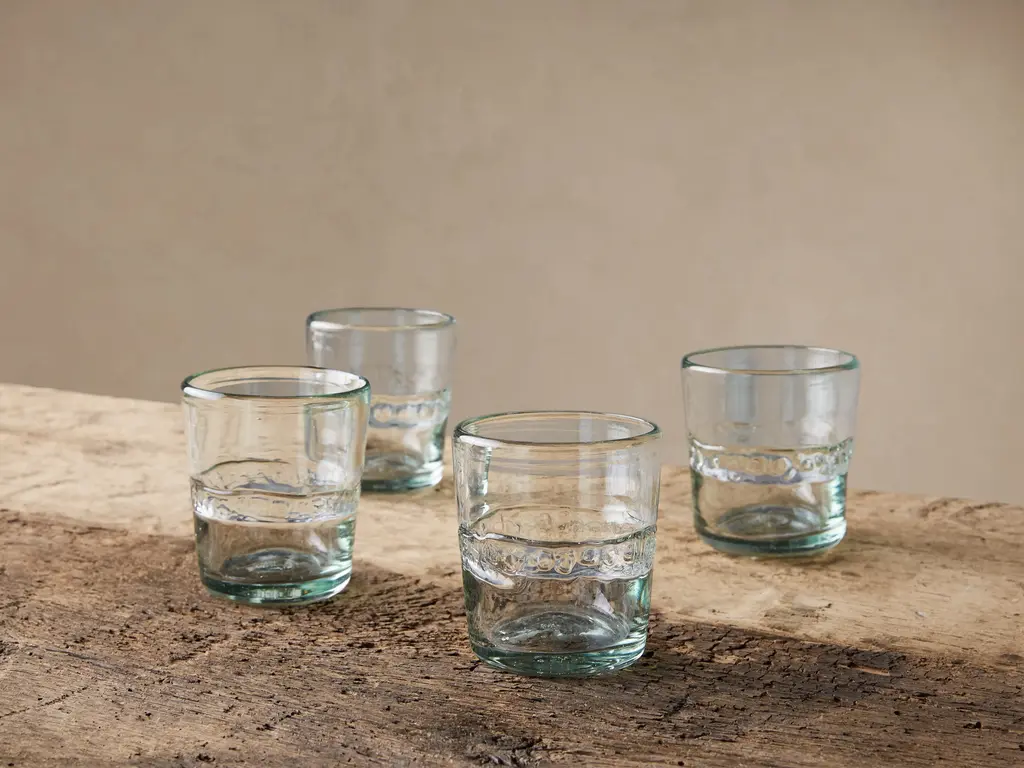 Our Ribbon Glassware Collection is a true testament to the art of glassblowing, reflecting the precision and beauty of the craft. Made partially with recycled glass by glasswork artisans in Mexico, our Ribbon Double Old-fashioned Glass is hand-blown using recycled glass. Each piece goes through an extensive process where a strip of molten glass is added to the exterior of the design while the glass is still hot; creating a thick glass ribbon that adds dimension and visual interest to a classic look. This collection is made of hand-blown recycled glass. 10 oz. capacity.