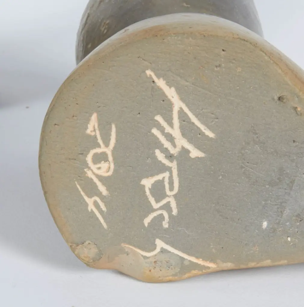 Contemporary American ceramic artist Richard Hirsch's Primal Cups with Stands #5 and #12 are raku-fired, hand built and hand sculptured. Hirsch creates ceramic sculptures that explore the spirituality and ritual embedded in familiar vessel forms. He imbues his work with the look of age and antiquity by applying certain ceramic surfaces and incorporating other materials such as iron, glass, bronze, and wood. As Hirsch states in his artist statement, "Ultimately, this work is an attempt to metamorphosize the seemingly mundane vessel-object into a sacred entity." They were photographed as a pair, but price below is per piece. Shown from left to right are Primal Cup with Stand #5 (2014) (7.75“ x 9“ x 5“) and Primal Cup with Stand #12 (2014) (7.5“ x 7.5“ x 5“). Signed and dated on the cup by the artist. These sculptures ship directly from the artist’s studio in Rochester, NY.Richard Hirsch Brief Bio: In the field of contemporary ceramic, Rick Hirsch has earned an international reputation. He has achieved this recognition by engaging in numerous diversified professional activities. Through efforts in university teaching, exhibits, writing, lecturing and researching he has risen to worldwide prominence.In 1975, Hirsch co-authored a book entitled Raku, published by Watson-Guptill. This was the first comprehensive text to address the new innovations developing in the west that were transforming traditional Japanese Raku. Also, in the same year, Hirsch became a founding faculty member of The Program in Artistry at Boston University. Currently, Hirsch is a Professor Emeritus at The School for American Crafts which is a part of Rochester Institute of Technology in Rochester, NY. His university teaching career now spans well over four decades.Repeatedly, Hirsch has participated in several milestone exhibitions and publications. Significant shows include; The Evolution of American Art in Craft Media Since 1945; Echoes: Historical References in Contemporary Ceramics; American Ceramics Now; Raku: Origins, Impact and Contemporary Expression; and Convergences: The Presence of the Past in Contemporary American Ceramics.Frequently his work appears in book and magazine publications, such as; Overseas Contemporary Ceramic Art Classics by Baiming, China; Raku Investigations into Fire by David Jones, England; The History of American Ceramics from 1607 to the Present by Elaine Levin, New York; World Contemporary Ceramics by Baiming, China; and Firing, Philosophies within Contemporary Ceramic Practice by David Jones, England.Several museums have included his work for their permanent collections. These include; The Carnegie Museum of Art, Pittsburgh; The Renwick Gallery, Smithsonian Institute, Washington DC; The High Museum of Art, Atlanta; The Everson Museum of Art, Syracuse; The Nelson-Atkins Museum of Art, Kansas City, Missouri; The Taipei County Yinko Ceramics Museum, Taipei, Taiwan; and the George R. Gardiner Museum of Ceramic Art, Toronto, Canada.In 1984, Hirsch was elected as a permanent member of The International Ceramics Academy, a worldwide organization headquartered in Geneva, Switzerland. A recipient of a William J. Fulbright Research Scholar Award in 2002, Hirsch has also received several Individual Artists Grants. Most recently he was honored by The Rochester Institute of Technology, with the Board of Trustees' Outstanding Scholarship Award. Recently Hirsch collaborated with Dr. Scott Meyer on his biography, the book is entitled With Fire: Richard Hirsch and is published by The Cary Graphic Arts Press at RIT, ISBN-13: 978-1-933360-97-3.Amid the ever-shifting sands of change and new trends that is prevalent in contemporary ceramics, Richard Hirsch has maintained his steadfast personal aesthetic and continues to make a significant contribution to his field.