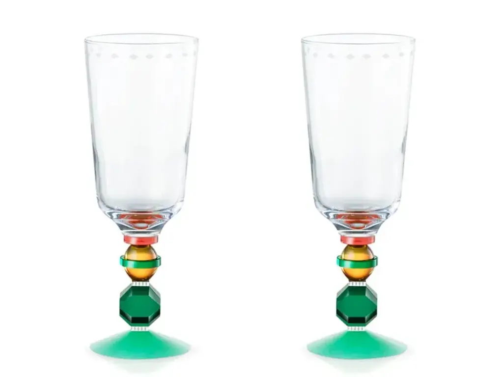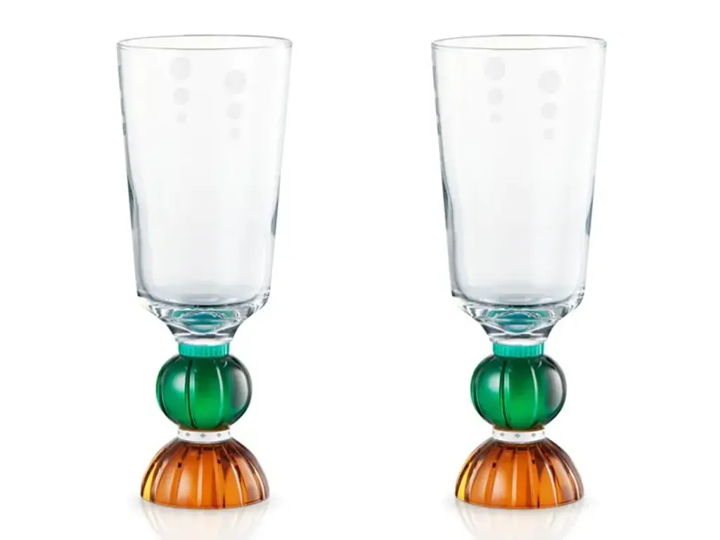 Richmond glasses are made from hand-cut crystal and glass with a subtle diamond engraving around the rim.Arrange them in vibrant contrast to any decadent table setting.