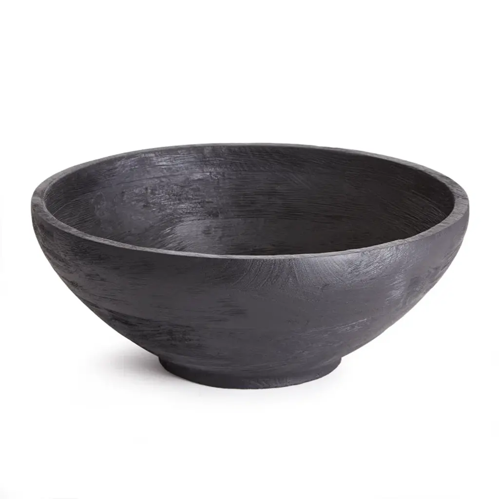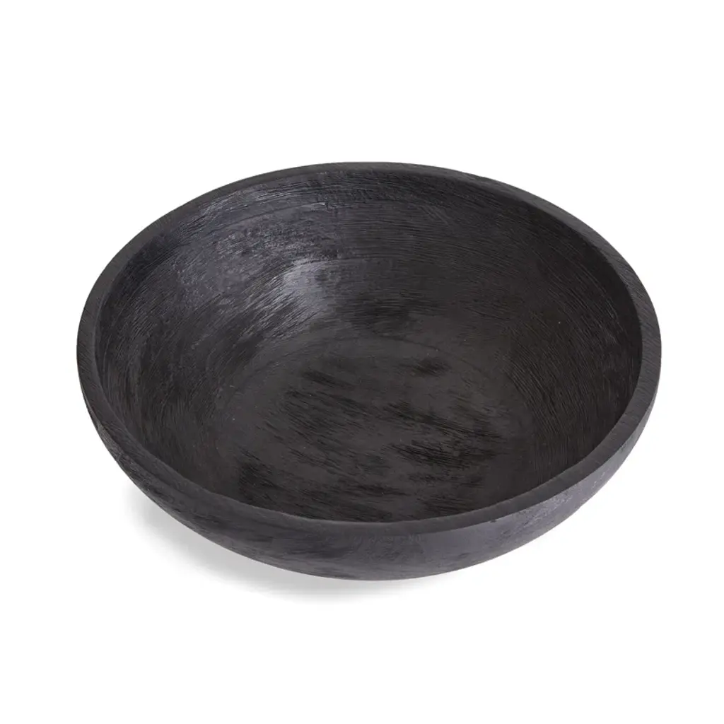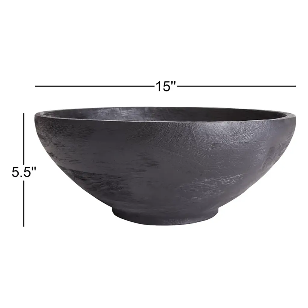 Serve up your best salad in this handcrafted serving bowl. Made of solid mango wood and stained a dramatic deep black, it is a stunning bowl for your favorite recipes.