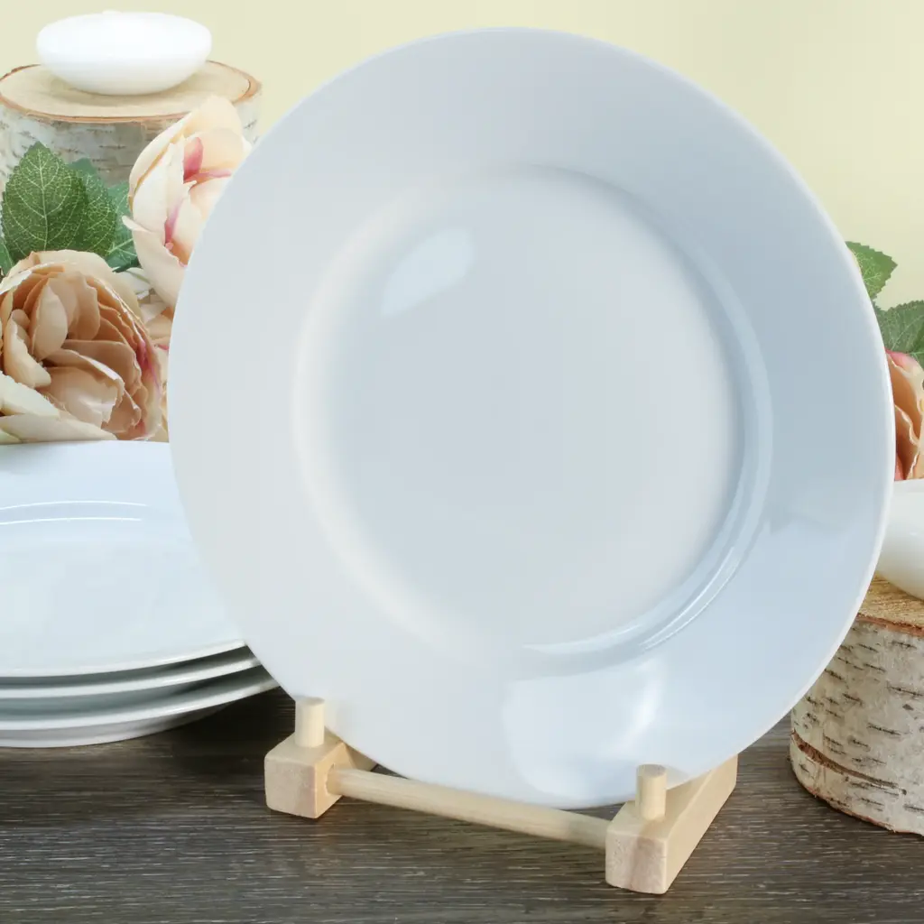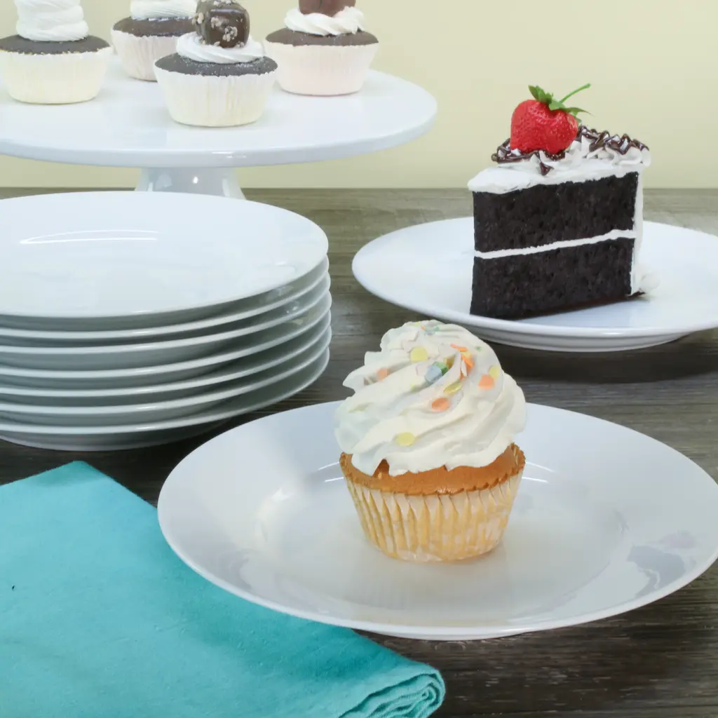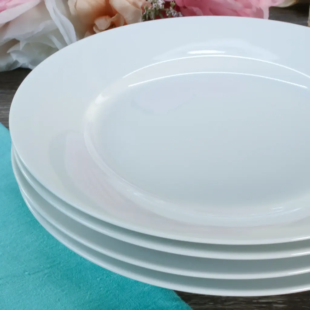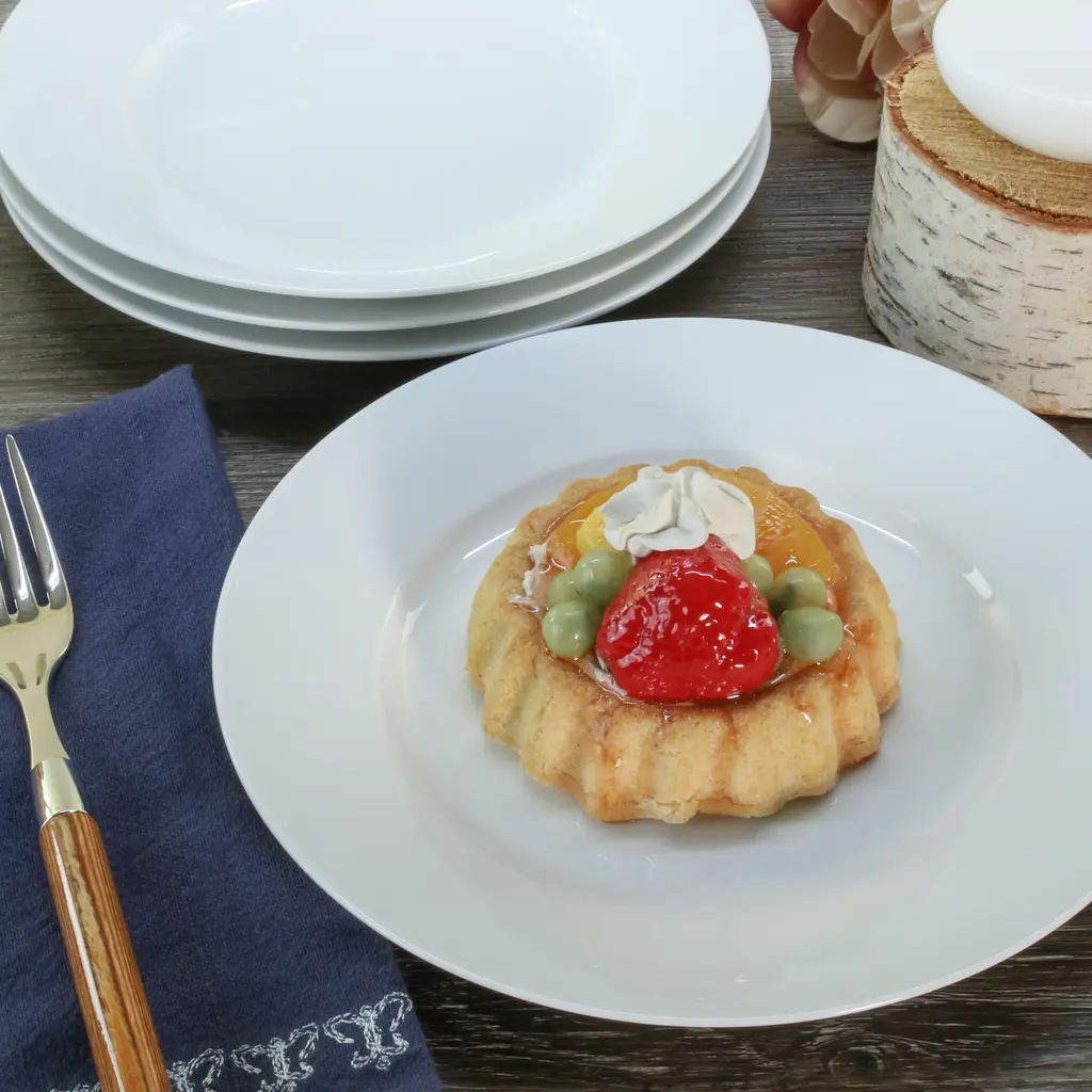 Crafted from durable porcelain, this set of 4 classic white 8.25" rim salad plates from BIA Cordon Bleu is a timeless addition to any table setting. Perfect for everyday use or special occasions, these plates feature simple lines and a rimmed design for a touch of elegance. Ideal for casual or fine dining, they create a cafe like atmosphere at home. These restaurant quality plates are versatile and can be mixed with other colors for a diverse look. Microwave and dishwasher safe. They are a practical yet stylish choice for entertaining guests or enjoying a meal with family. BIA Cordon Bleu: Designed With Modern Sensibility For Wherever You Live, However You Cook, And Whenever You Entertain.