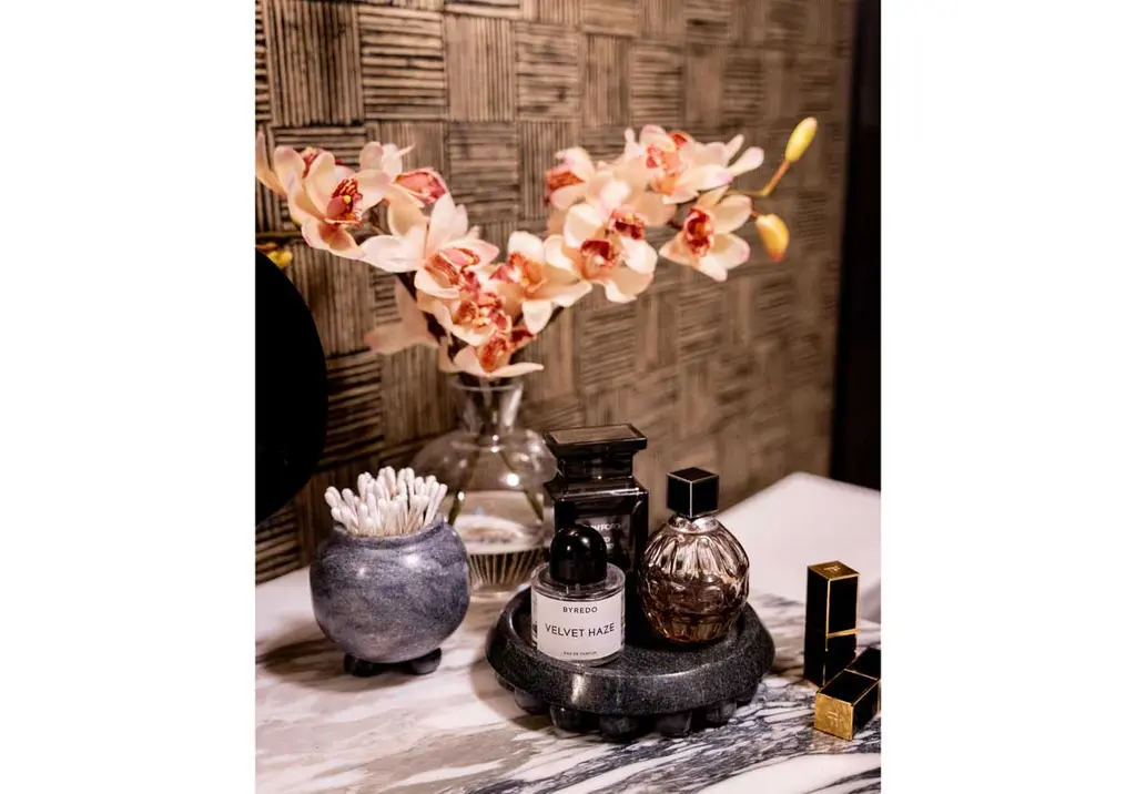 Natural and eye-catching, this petite dish makes an elegant statement. Featuring organic marble veining, it easily adds visual dimension further elevated by its small, rounded feet. Its versatile design styles well in any room, lending a refined touch.