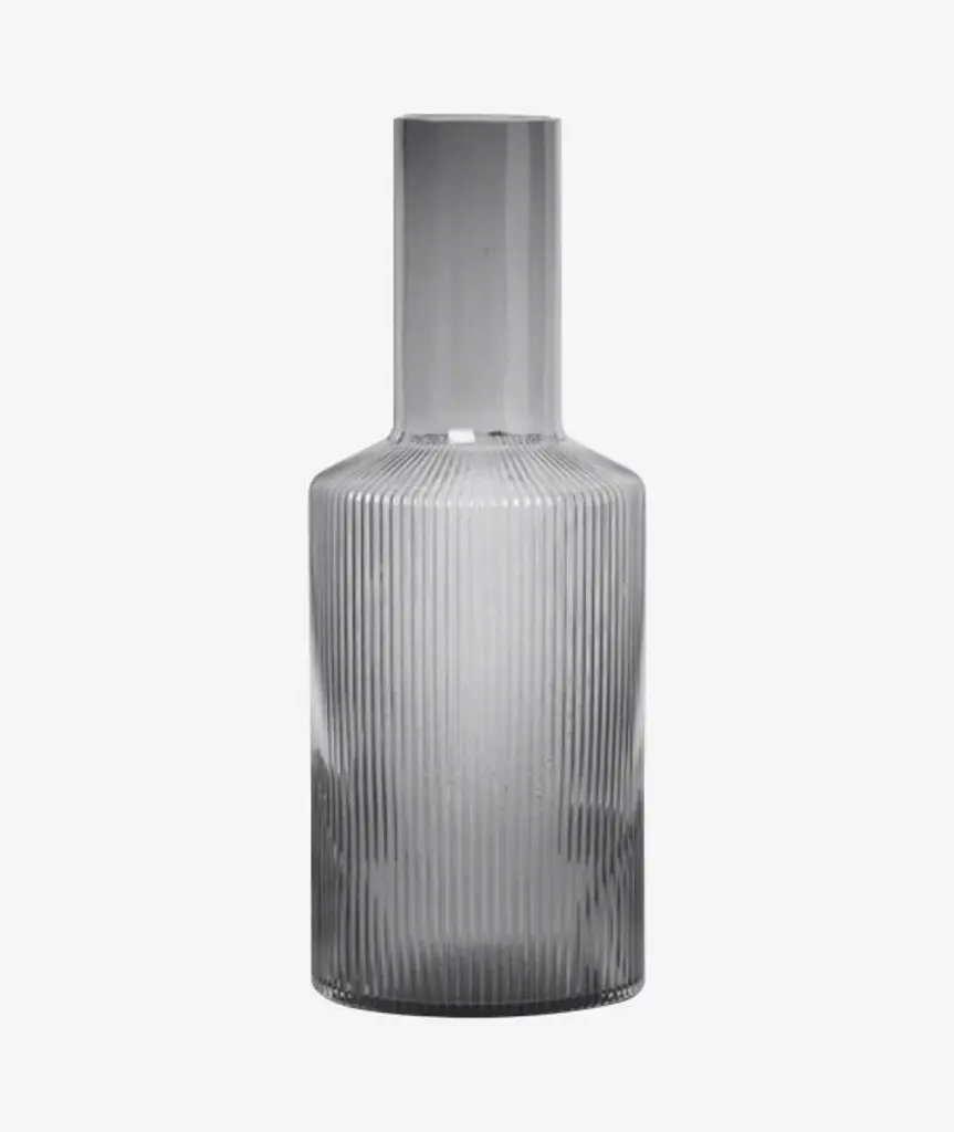 Mouth-blown into the mould, this practical and beautiful carafe features a rippled design for a contemporary look. Fill with water, juice or your favorite drink and pour into the matching set of glasses for a stylish way to serve.
