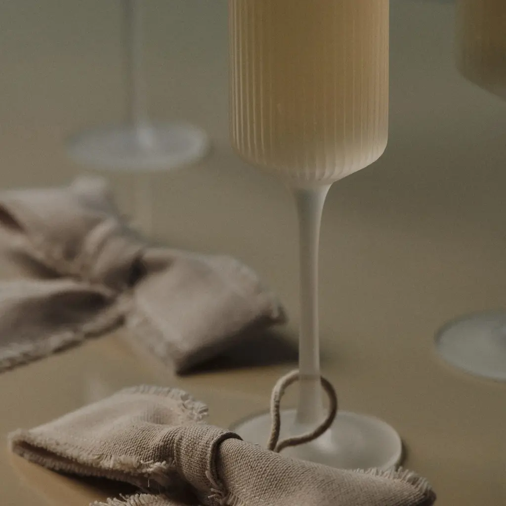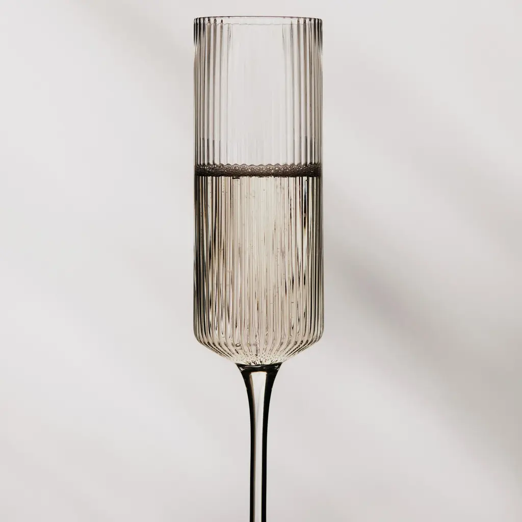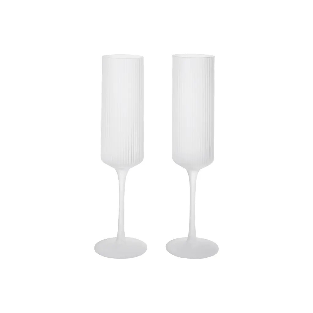 A refined and elegant addition to the beloved Ripple series, this set of two Champagne Flutes from Ferm Living is perfect for any celebration. Each glass is individually mouth-blown into a mould, creating the collection's signature rippled surface that is beautiful to see and to hold. The tall, slender silhouette is designed to enhance the bubbles and aroma of your favorite sparkling wine, bringing a sense of contemporary sophistication to every toast. A fusion of modern design and artisanal craftsmanship, it’s a stunning and timeless choice for your home bar. Highlights: